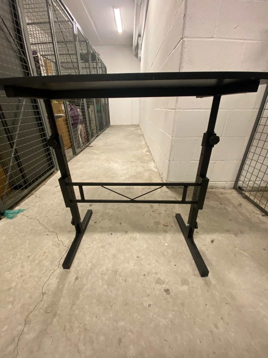 Selling a black adjustable height standing desk! It's perfect for creating a comfortable workspace, whether you prefer to sit or stand. Great for small spaces, this desk is in good condition and ready to use. It's easy to adjust to your preferred height, making it a versatile addition to any home or office