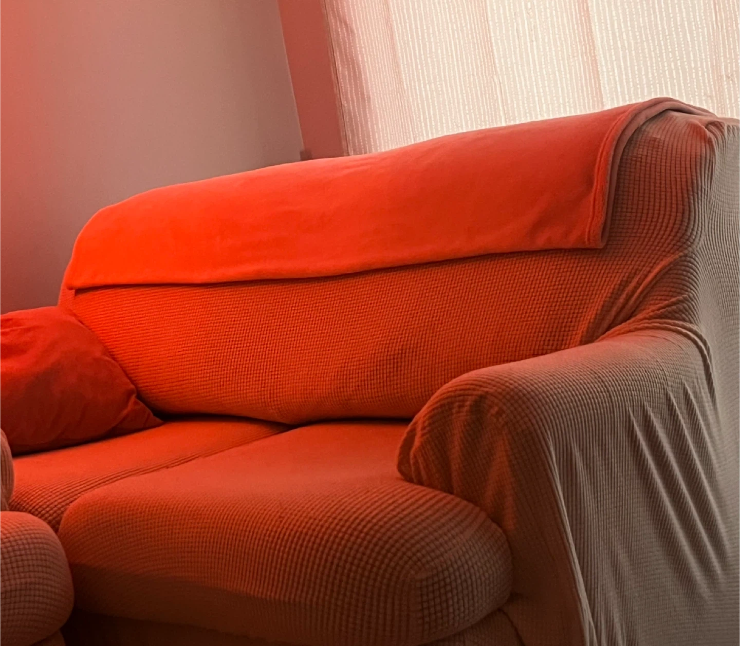 Selling a cozy loveseat comes with beige covers ! It's in good condition and would be a great addition to any living room or bedroom. Cat friendly home .
