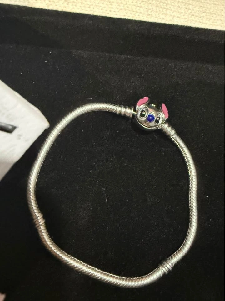 Discover a token of love and belonging with this Disney-inspired bracelet, showcasing Stitch's iconic silhouette in bold colours, reminding us that everyone deserves a chance to belong. Box Included…. Size -19 cm (Available )