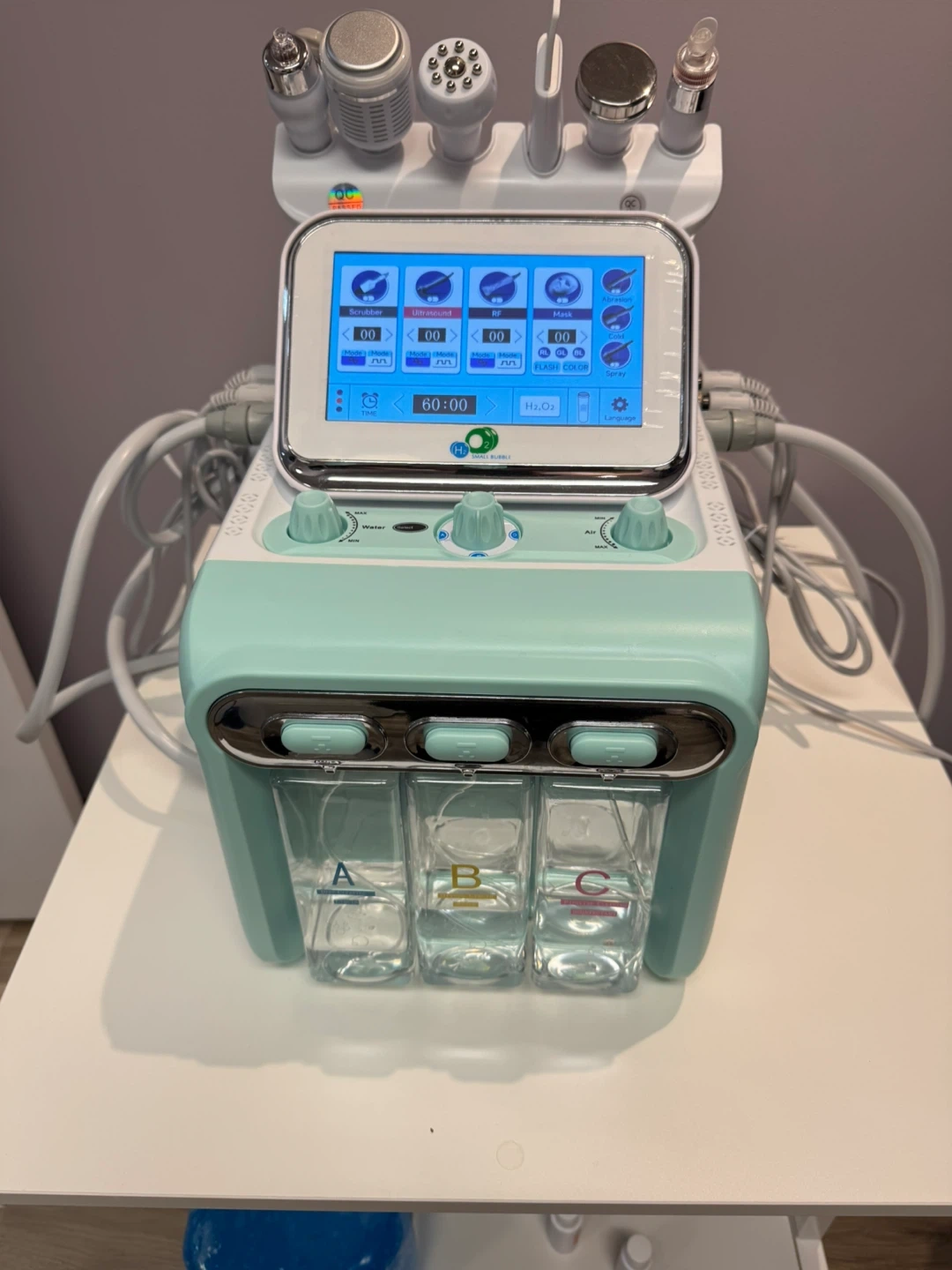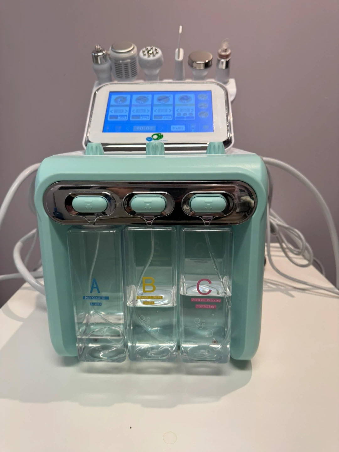 I'm selling a used aqua facial machine. It's in great condition and ready for its next owner! It features a display screen and several attachments for various facial treatments. Brand new in Box