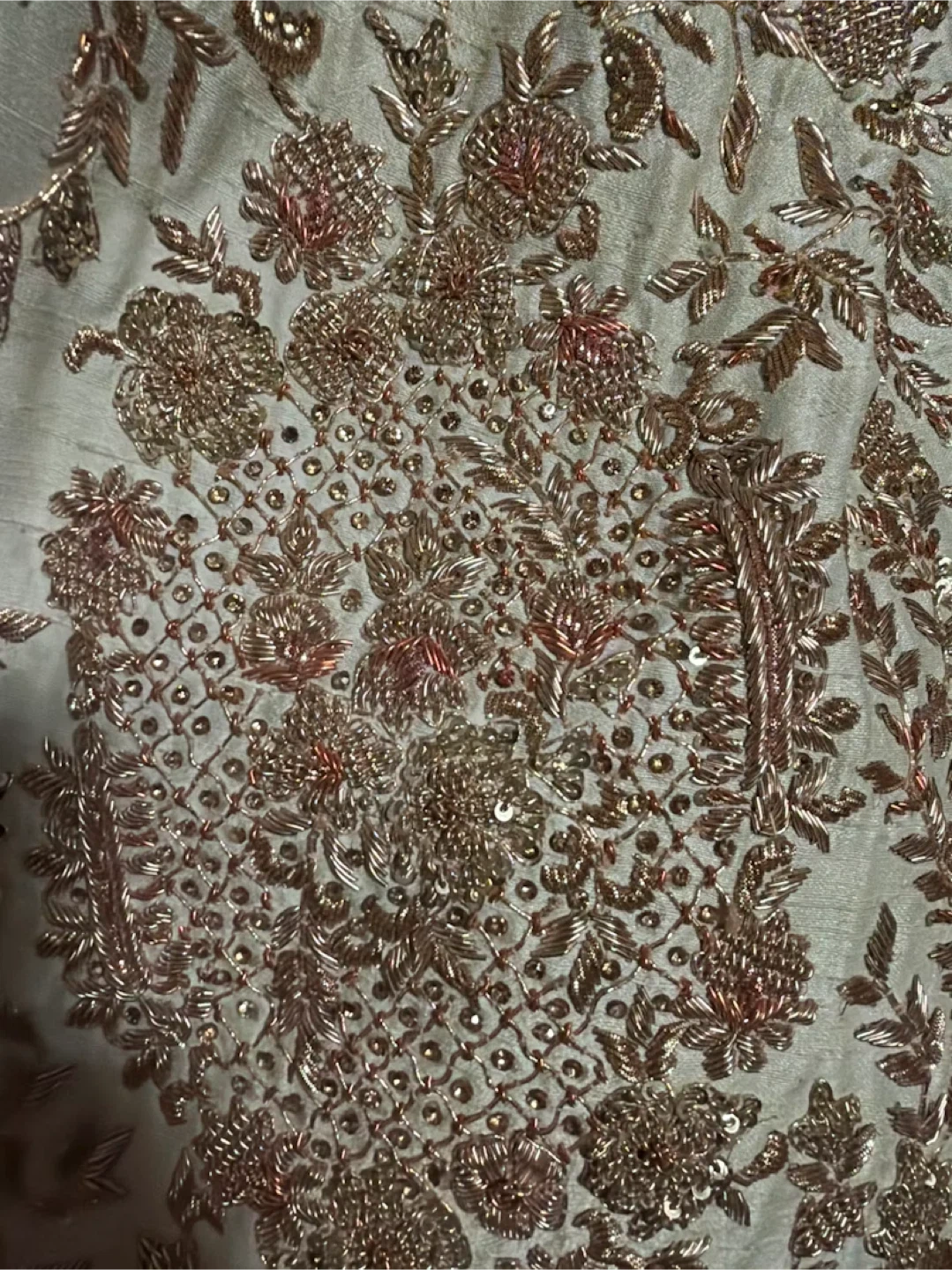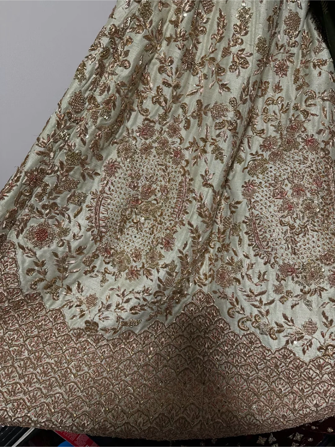 Beautiful Indian wedding outfit with intricate embroidery and a delicate dupatta. Very heavy bottom