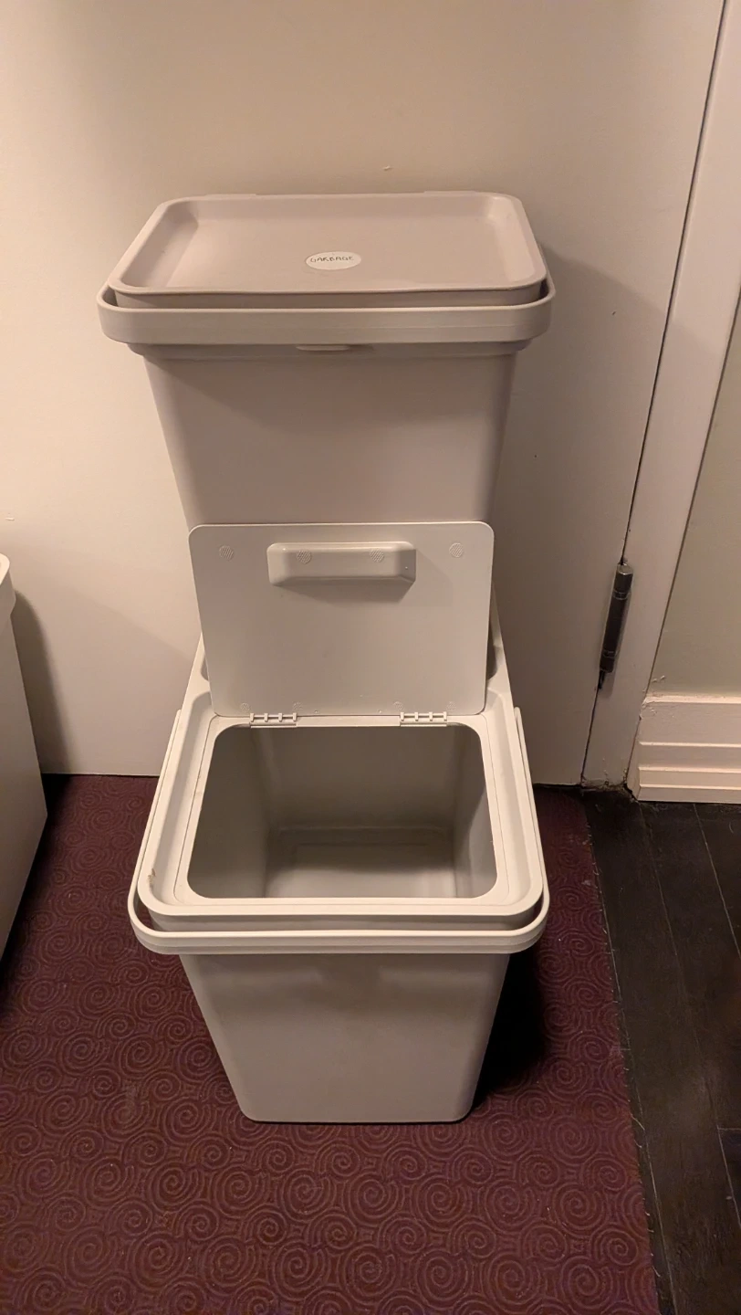 It is easy to access the bin even when stacked thanks to the included lid. It is hinged and can be opened in two ways. At least 50% of the plastic in the bin and lid is recycled.