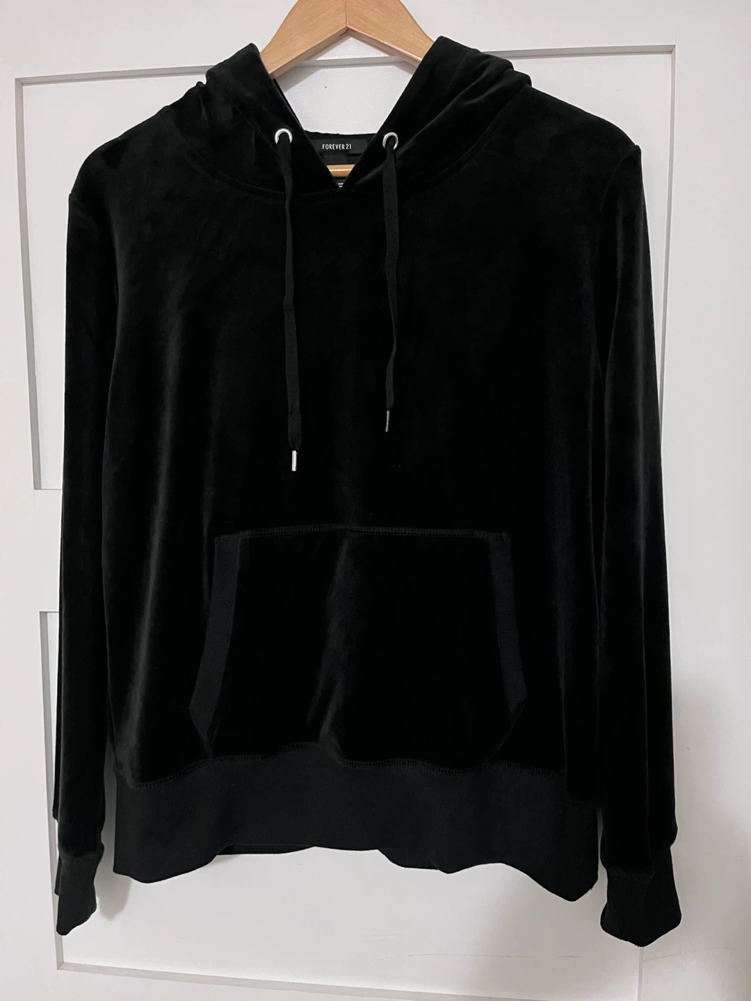 Forever 21 black velvet hoodie in size medium. It's super soft and comfy and in very good condition. Looks brand new with no flaws.