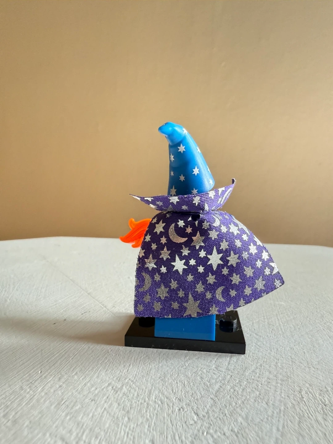 Cute block-bottom Lego figure of a wizard π§πΌββοΈ