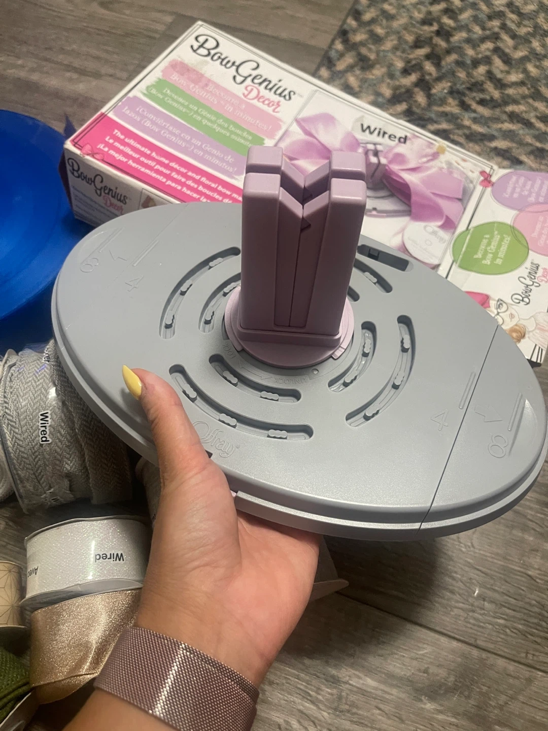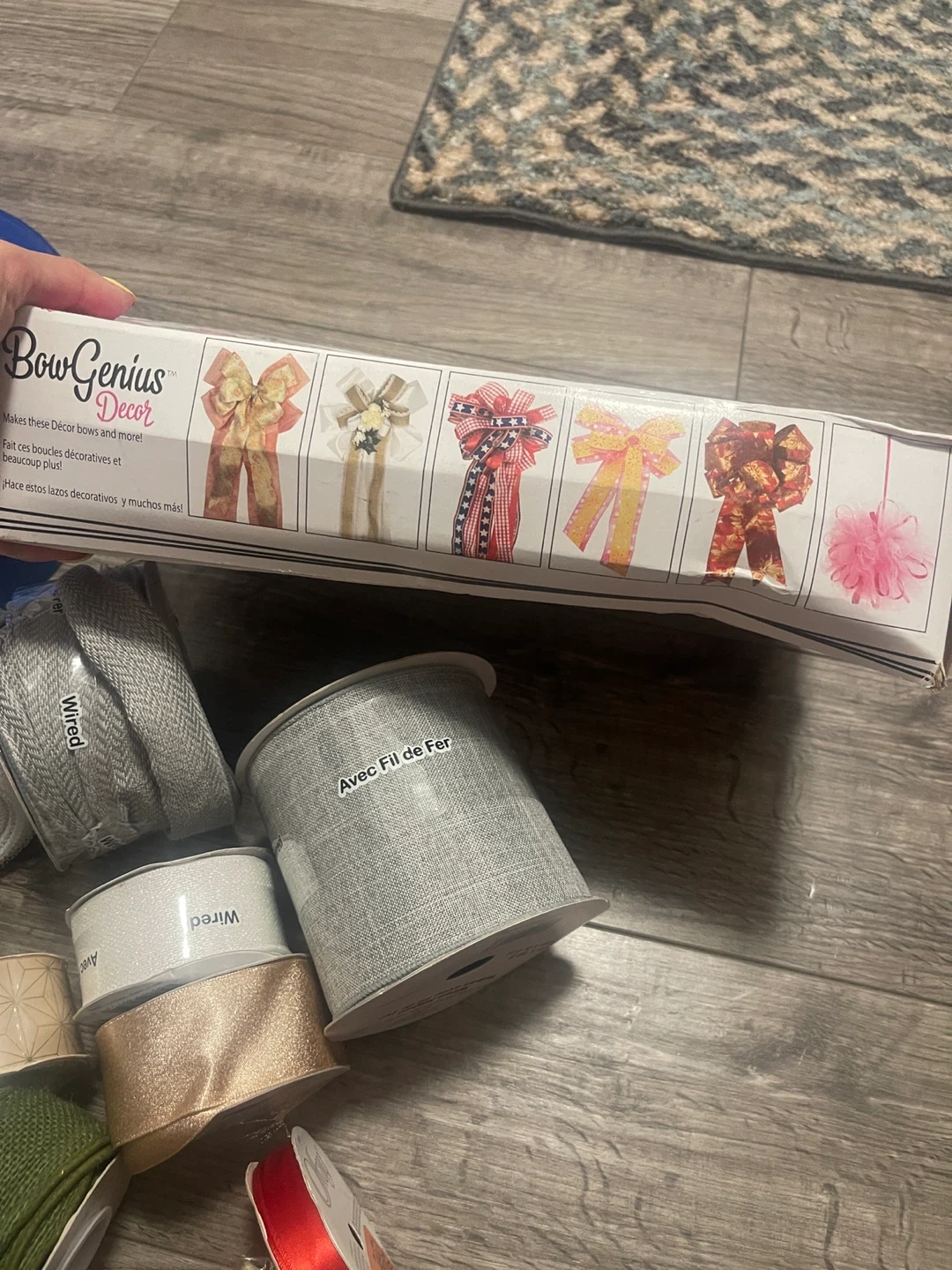 Selling a Bow Genius Decor set, perfect for making beautiful bows for any occasion! It comes with a variety of ribbon rolls to get you started on your crafting projects. The box is included as well