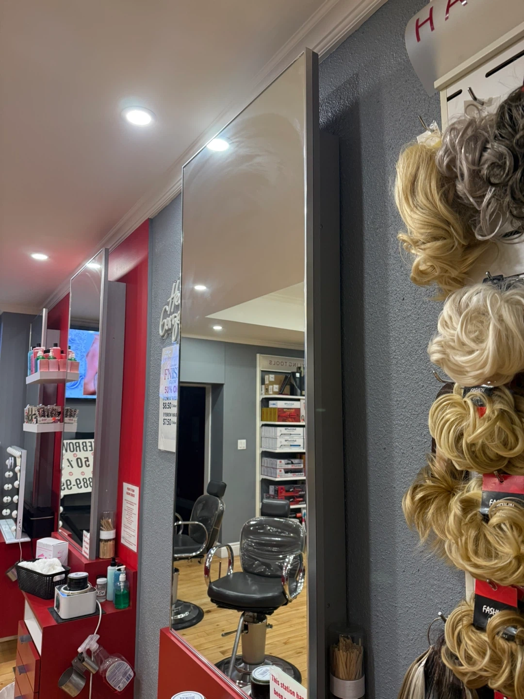 Selling a large mirror, perfect for a salon or home use. It's in good condition and ready to be used! Comes with the wood frame.