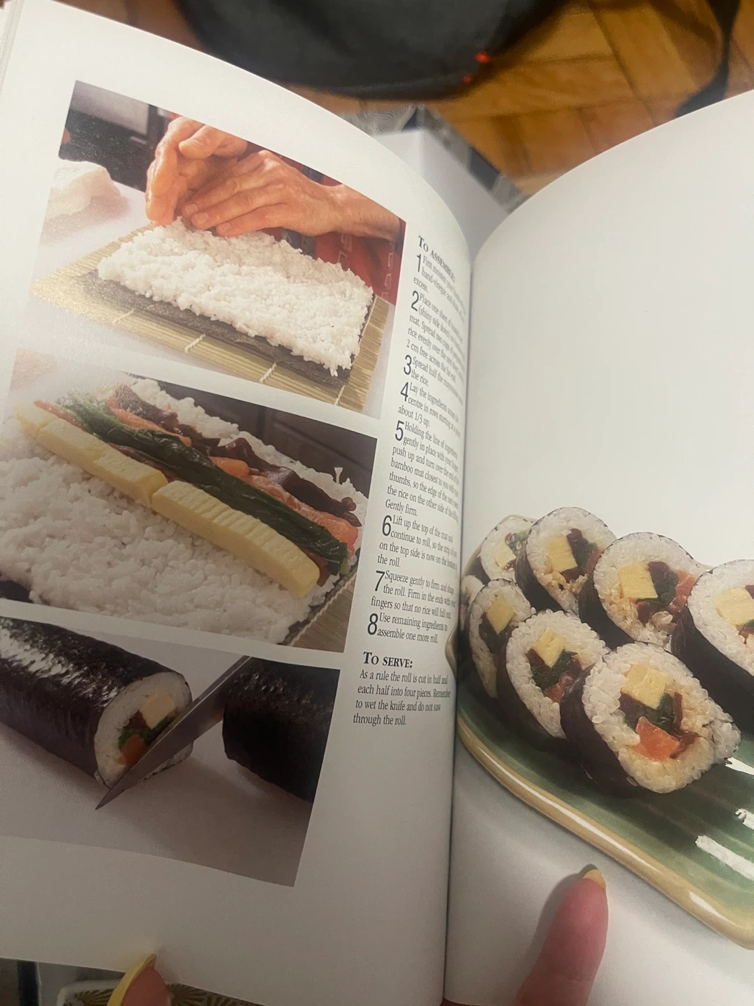 Selling a brand new, complete sushi book and serving kit! It includes everything you need to create and enjoy your own delicious sushi dishes using expert techniques. The kit contains a sushi book with 64 full-color pages accompanied by step-by-step instructions, a rolling mat, serving boards, dipping bowl, chopsticks, and chopstick rests. All ingredients include beautiful full-color instructional photographs. Packaging to be retained as it contains important information