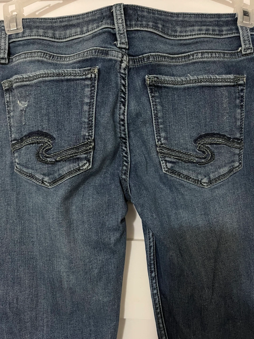 Silver Jeans Co. women's jeans in size 28 (XS). They're in great condition. The denim has a nice blue wash and has a distressed look. Tag still on.