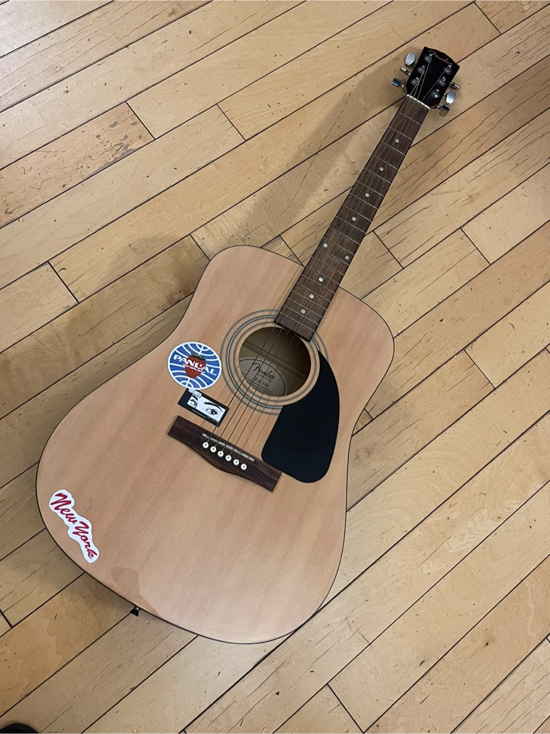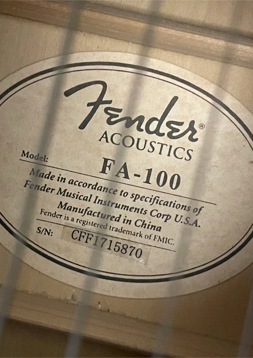 Selling a Fender Acoustics FA-100 guitar! It has a few stickers on it, but otherwise it's in good condition. Great for beginners or anyone looking for a reliable acoustic guitar
