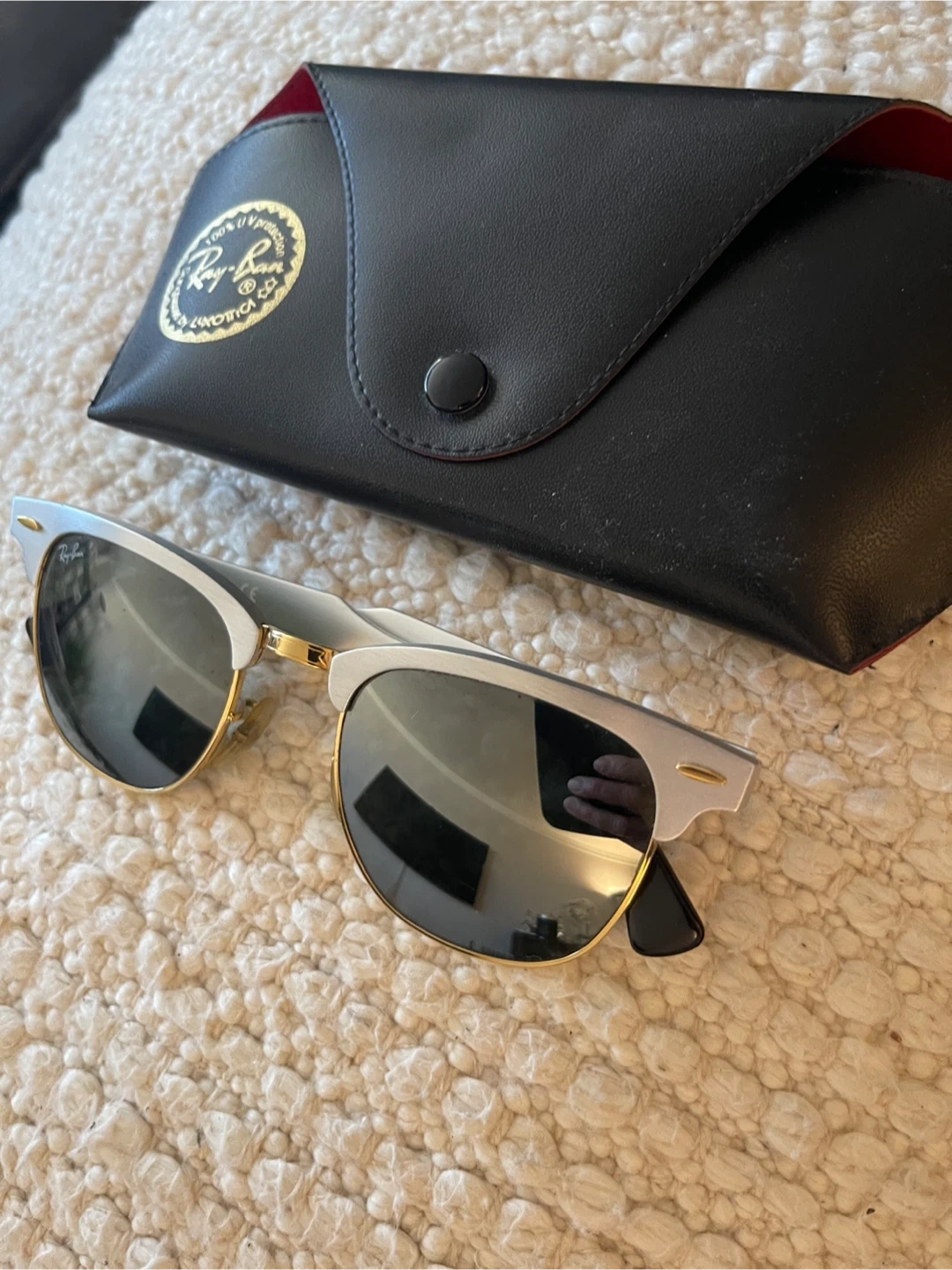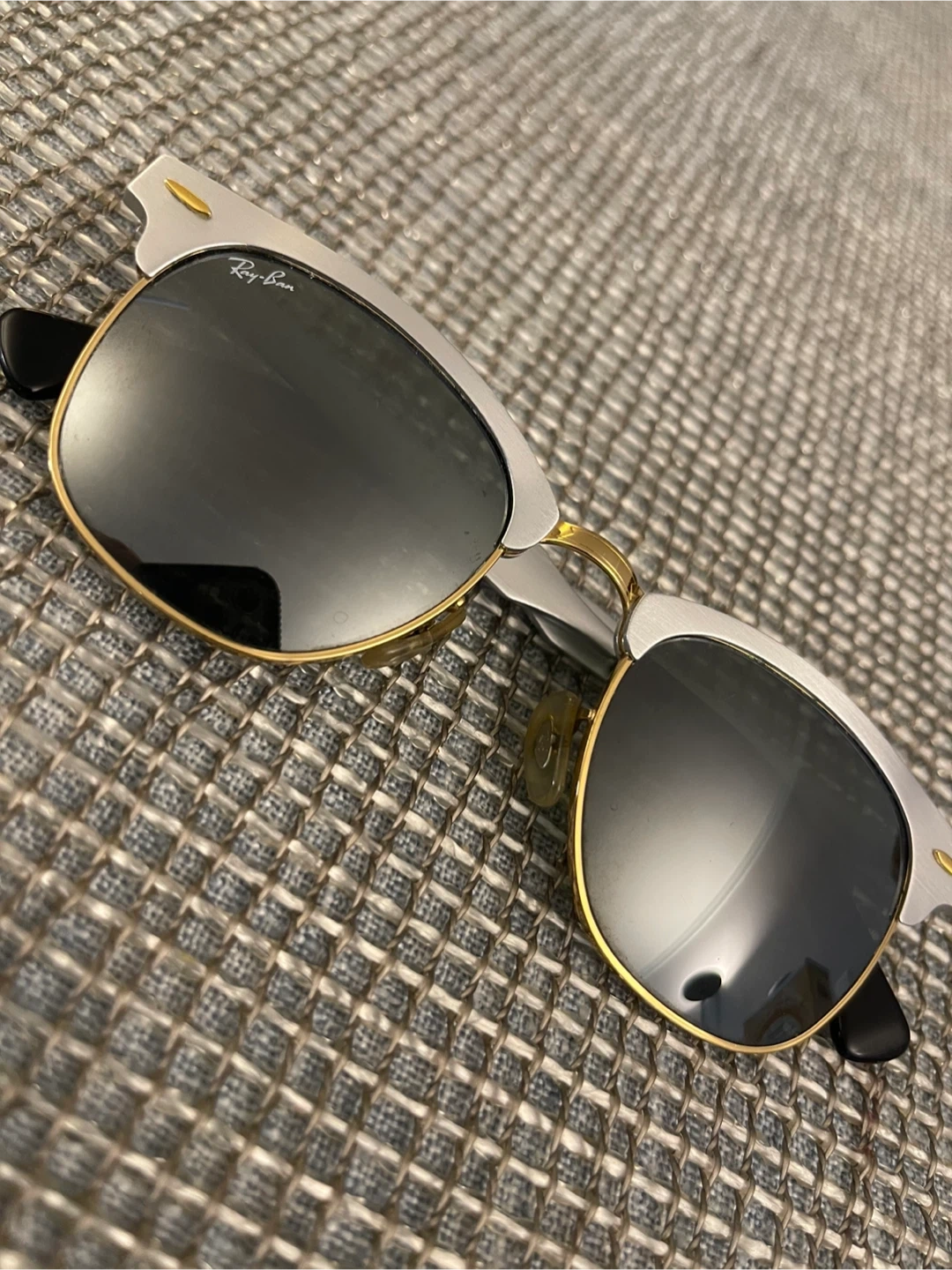 Selling a pair of Ray-Ban Clubmaster RB3507 sunglasses in silver. They are in great condition and come with the original case. The size is 51-21 3N. CLUBMASTER ALUMINUM Silver and Good Aluminum frame Vintage meets modern with Ray-Ban Clubmaster Aluminum. Refashioned from the original Clubmaster, these futuristic sunglasses feature modern aluminum material embellished onto the unmistakable Clubmaster frame. While made from durable aluminum metal, Clubmaster Aluminum RB3507 Sunglasses weigh next to nothing and come in a variety of aluminum frame finishes including silver, copper, gunmetal and black. This sleek and modernistic twist on the iconic Clubmaster makes these sunglasses a must have for those with a fashion forward edge to their style.