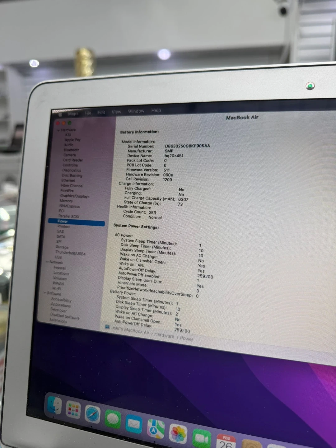 Selling a used MacBook Air 13-inch (Mid 2013) running macOS Monterey. It has a 4 GB 1600 MHz DDR3 memory and 121.12 GB flash storage. The battery health is at 75%. Model number is D863325008KF90KAA