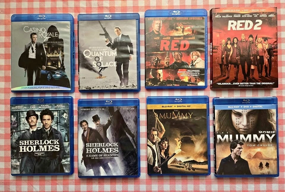 * All 8 movies are gently used, cases and jackets intact. All disks are in mint condition with no scratches.