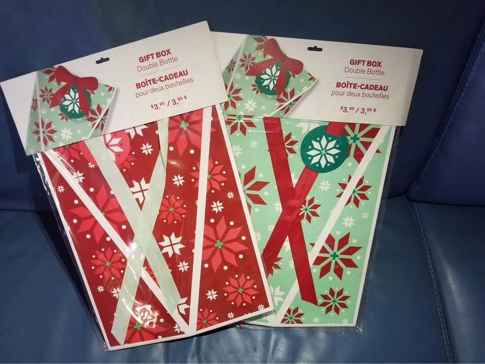 Iβm selling brand new, unopened LCBO 2-bottle gift boxes β great for wine, spirits, or tons of other creative gift ideas. Perfect for holiday gifts, parties, or stocking up on sturdy and festive packaging! These normally cost $3.95+ at LCBO, but Iβm offering them for just $1.50 each.