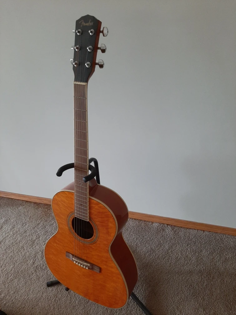 Selling a Fender GDO300 acoustic guitar. It's in great shape and ready for a new musician! Comes with stand and a case for easy transport and storage. Serial number SQ 04074937.