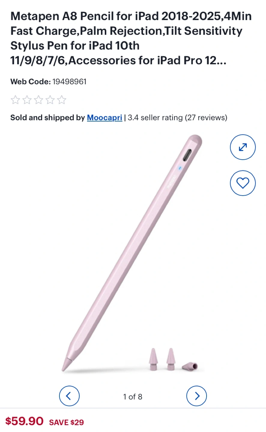 Selling a Metapen A8 Pencil for iPad 2018-2025 It charges 2X faster and lasts longer! It only takes 0.5 hours to charge and has 10 hours of writing.