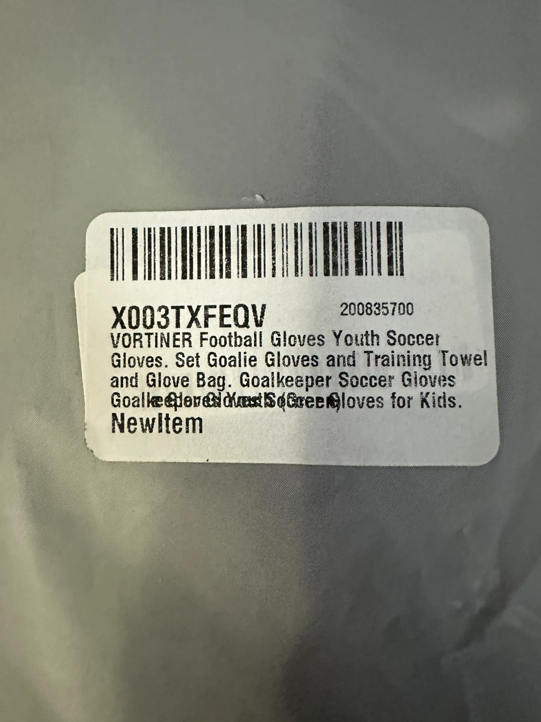 These brand new Vortiner youth soccer goalie gloves are brand new and ready for action! They come with a training towel and glove bag.