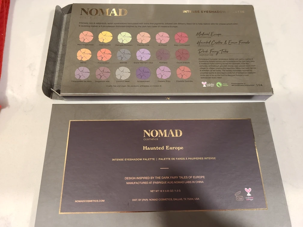 Nomad Haunted Europe eyeshadow palette! It features a variety of shades inspired by spooky European locations. Perfect for creating unique and dramatic eye looks!