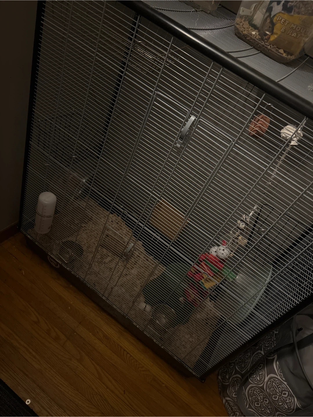 Selling a 2 pet rats comes with everything needed I switched levels for baskets less smell they still use it and I still have levels has food lots of shavings if I clean 1-2 times a week they don’t smell tbh these fancy rats r so social love to be held never bite I’ve never had rats so pleasant but I did spend 50$ on one of them so worth it tho message for more info I’ll send pics if needed this cage is like a farret size btw new they r like 500$ alone this one is used obviously