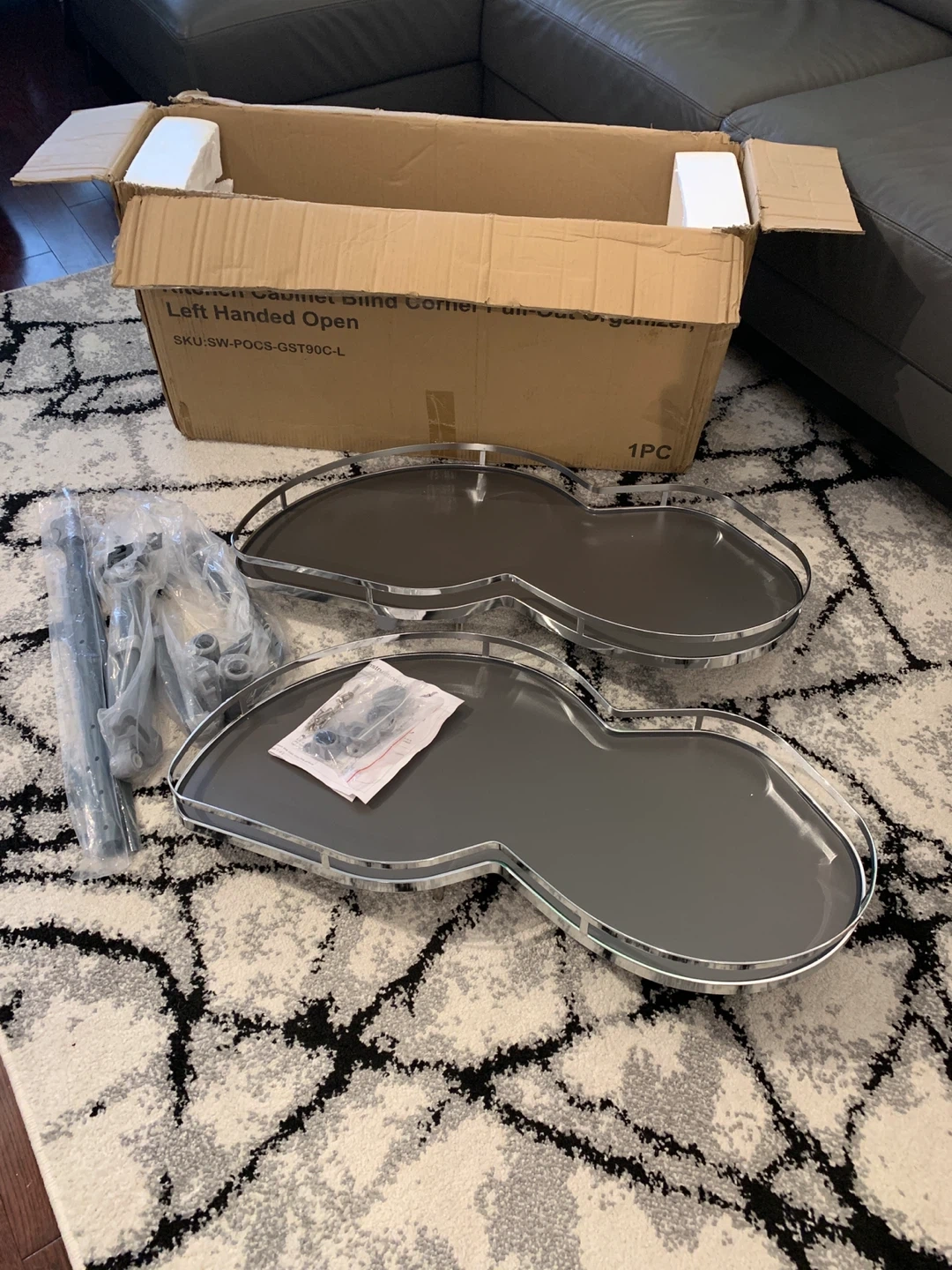 Selling a left-handed open cabinet blind corner pull-out organizer. It comes with the box and all the components you see in the pictures! Model number is SKU:SW-POCS-GST90C-L - https://www.amazon.ca/HANKEY-Organizer-Left-Open-Adjustable/dp/B0CM3BVVFK/ref=sr_1_27?dib=eyJ2IjoiMSJ9.P17-YLkM37lG_5cF19DOs9gjqawFo1k2GH5KS5FGEWUUdeVzpBZ7_wUHpWYwZQ03jt_ZigqMPt0FhDPx2ToDZkfi-cOr8w3SsUAl-wwmR-ljaWxrIoVgQ8PvlpBplqNdtJUWI77ODiGzDYuktjO5gAJnDdYPNK8mgmU2ObDFykjxSAeyOBDZcEBwR_gEXF2dnfN5585RP_PXd2X3AqWB5sE4FfGHmCVIokCwwuKDhH4Ez-qyXNJfdtPbt-_qEpAu_n4vRDGLnXHPOuCeo_Of1MqSsoGyXq_gw4lqhsyanBc.M_Jc35HgmSKtWTBFzjBwtWyfwd5gHaQKhPqTEmwN5qI&dib_tag=se&gad_source=1&hvadid=678441134131&hvdev=c&hvexpln=0&hvlocphy=9189671&hvnetw=g&hvocijid=4949175277272637222--&hvqmt=b&hvrand=4949175277272637222&hvtargid=kwd-899617016861&hydadcr=977_1015040246&keywords=kitchen%2Bcabinet%2Bblind%2Bcorner%2Bpullout&mcid=87740f6011d6309ca1c7b2581885561e&qid=1764036931&sr=8-27&th=1