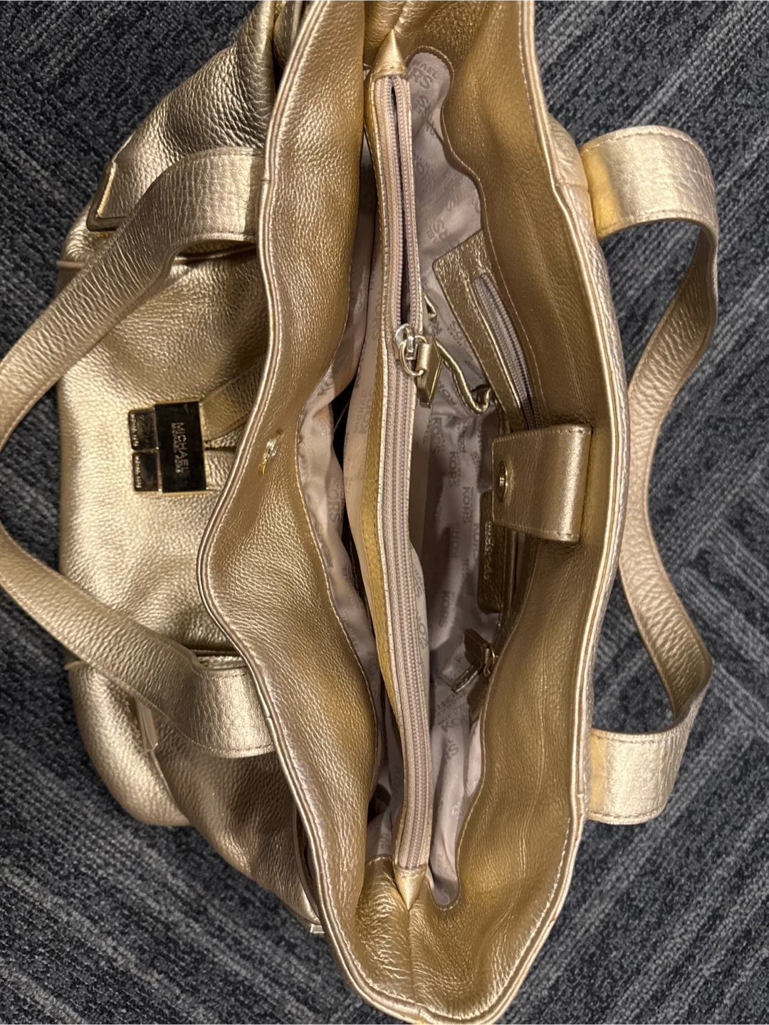 Selling a Michael Kors tote bag in a beautiful gold colour. It's made of leather and has a lot of space inside!