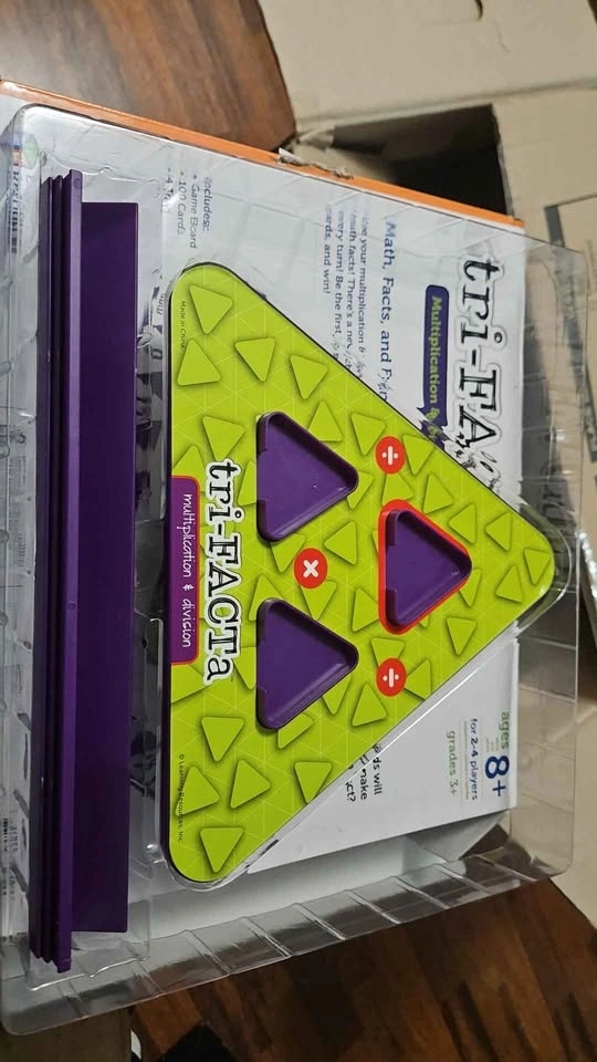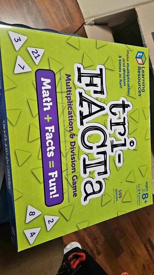 Almost new Tri-Facta board game to learn multiplication and division. Retails for $35. 2-4 players, 8+ and Grade 3+. From a household with cats. Pickup at Front and Spadina