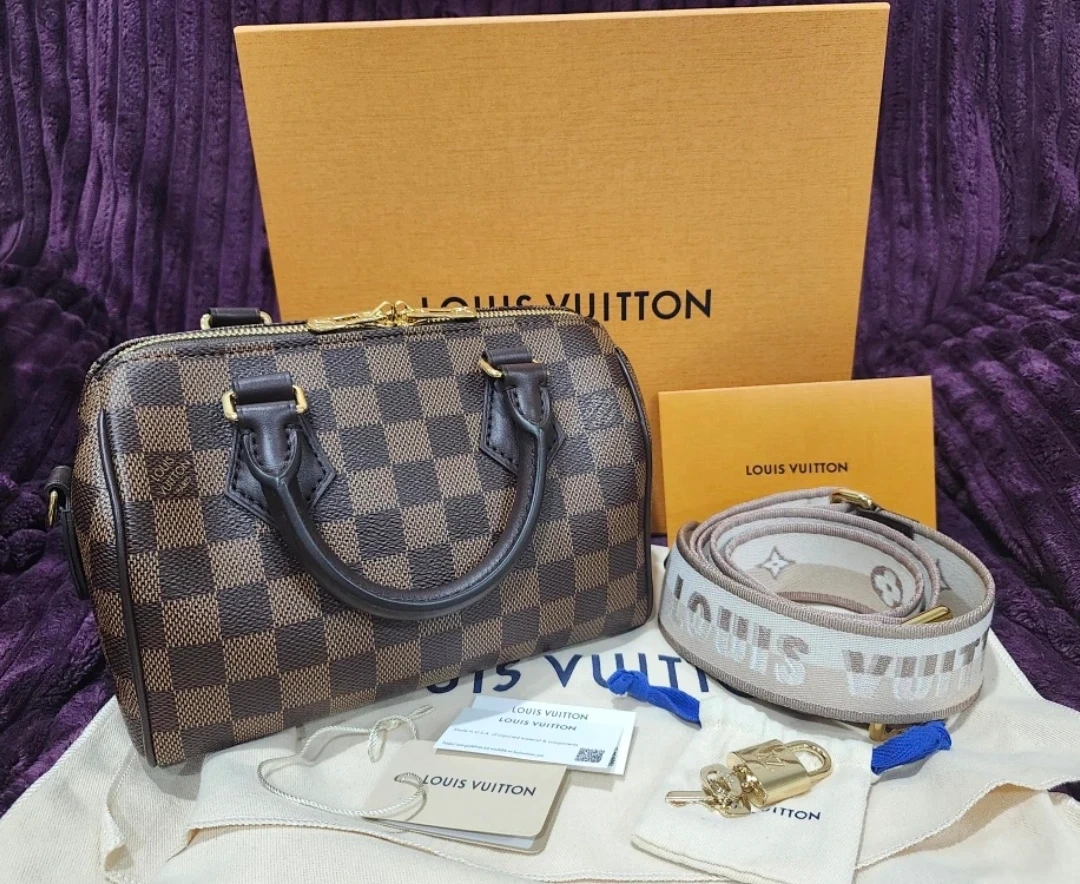 Selling a Louis Vuitton Speedy Bandouliere 20 in Damier Ebene. It comes with the box, dust bag, strap, lock and keys. It's in great condition and ready for a new owner! Used once.