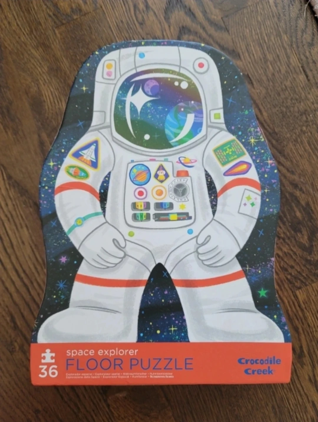Looking to sell a Crocodile Creek Space Explorer Floor Puzzle! It's a 36-piece puzzle that's perfect for kids who love space. The puzzle is in great condition and ready for a new home. It features a fun astronaut design and is sure to provide hours of entertainment