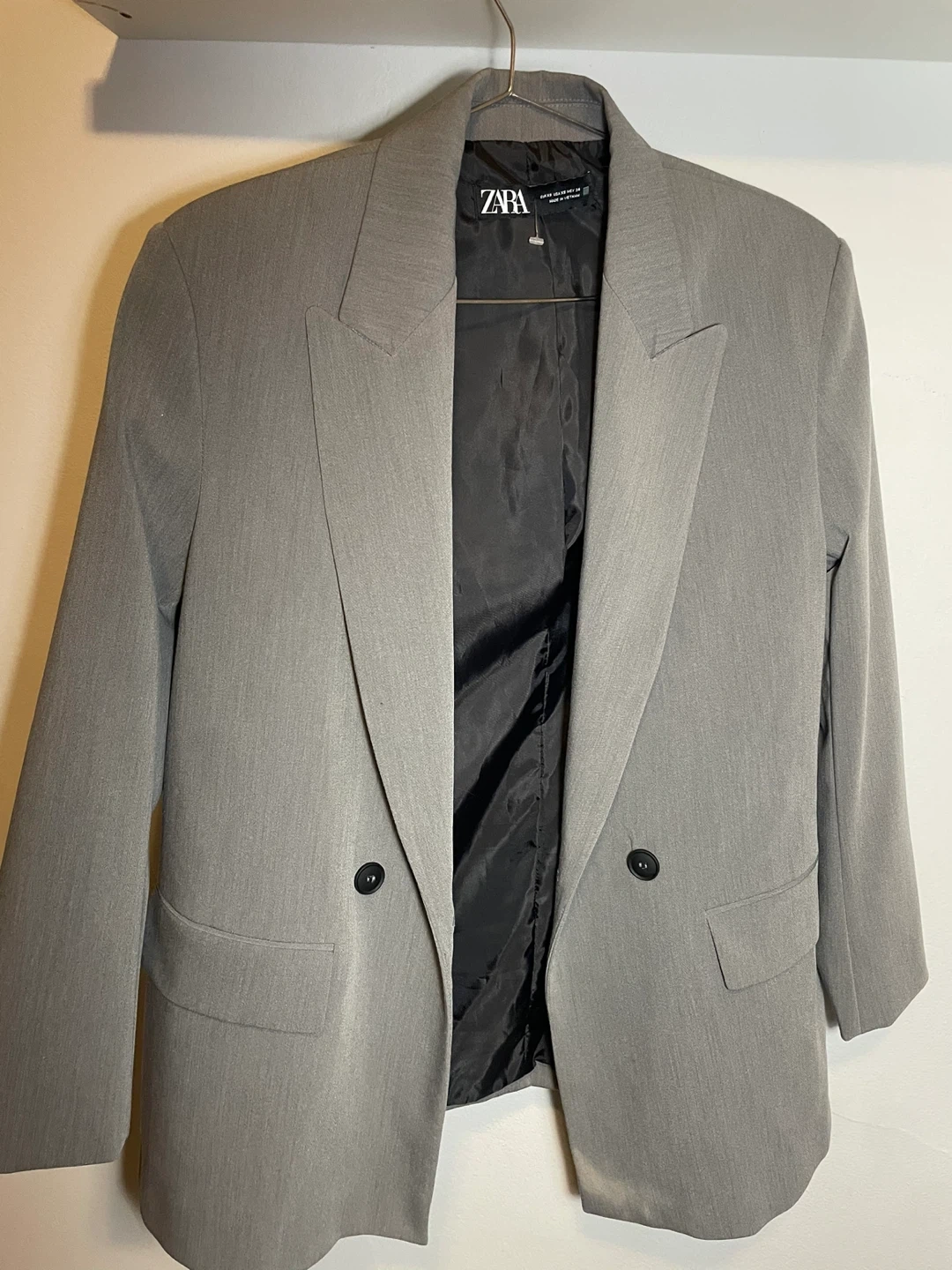 Selling a Zara blazer in a lovely grey colour! It's a size XS and in great condition. Perfect for adding a touch of style to any outfit