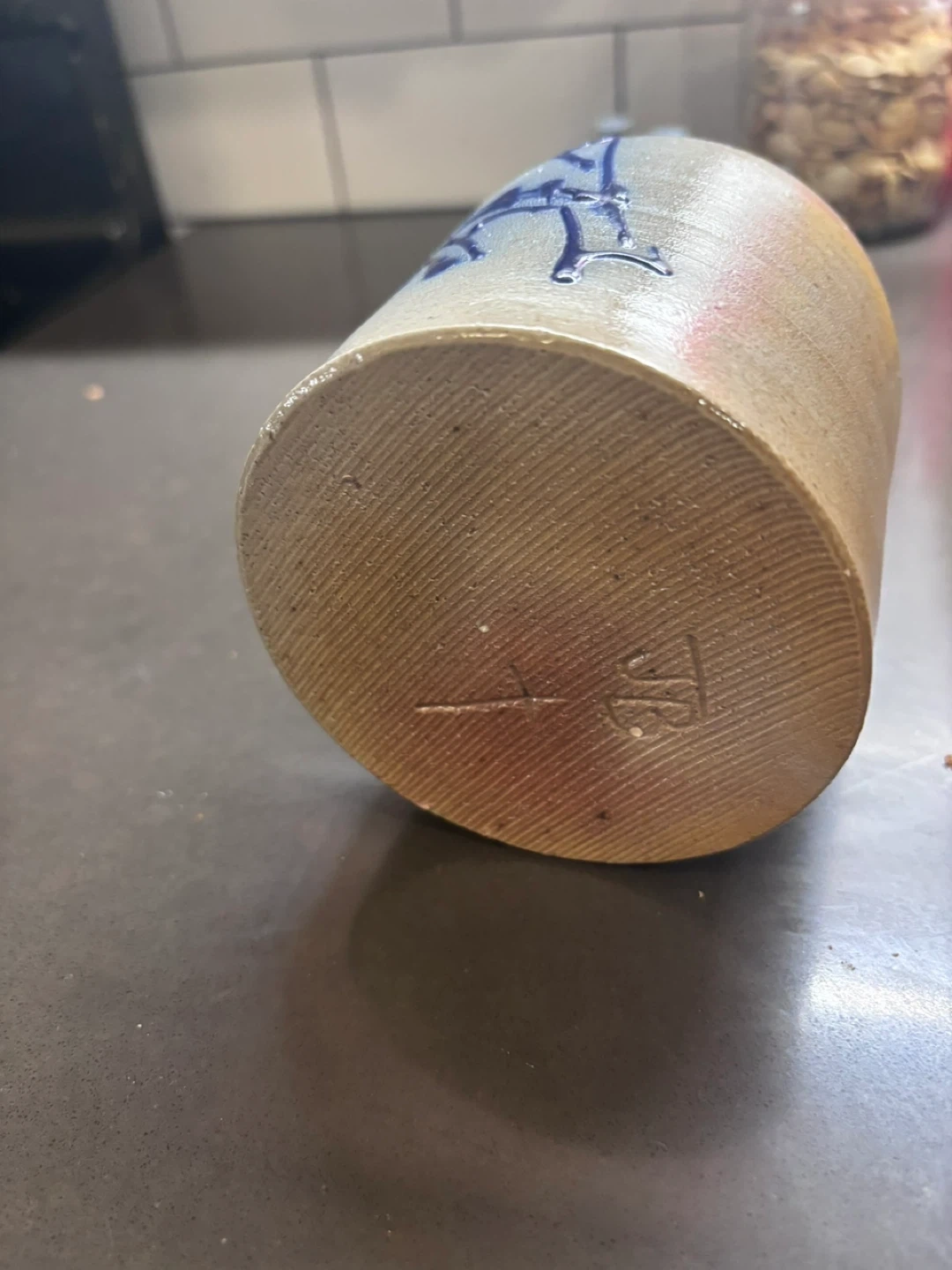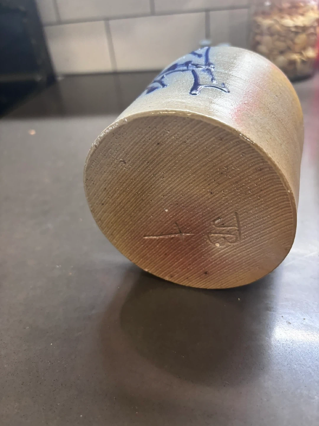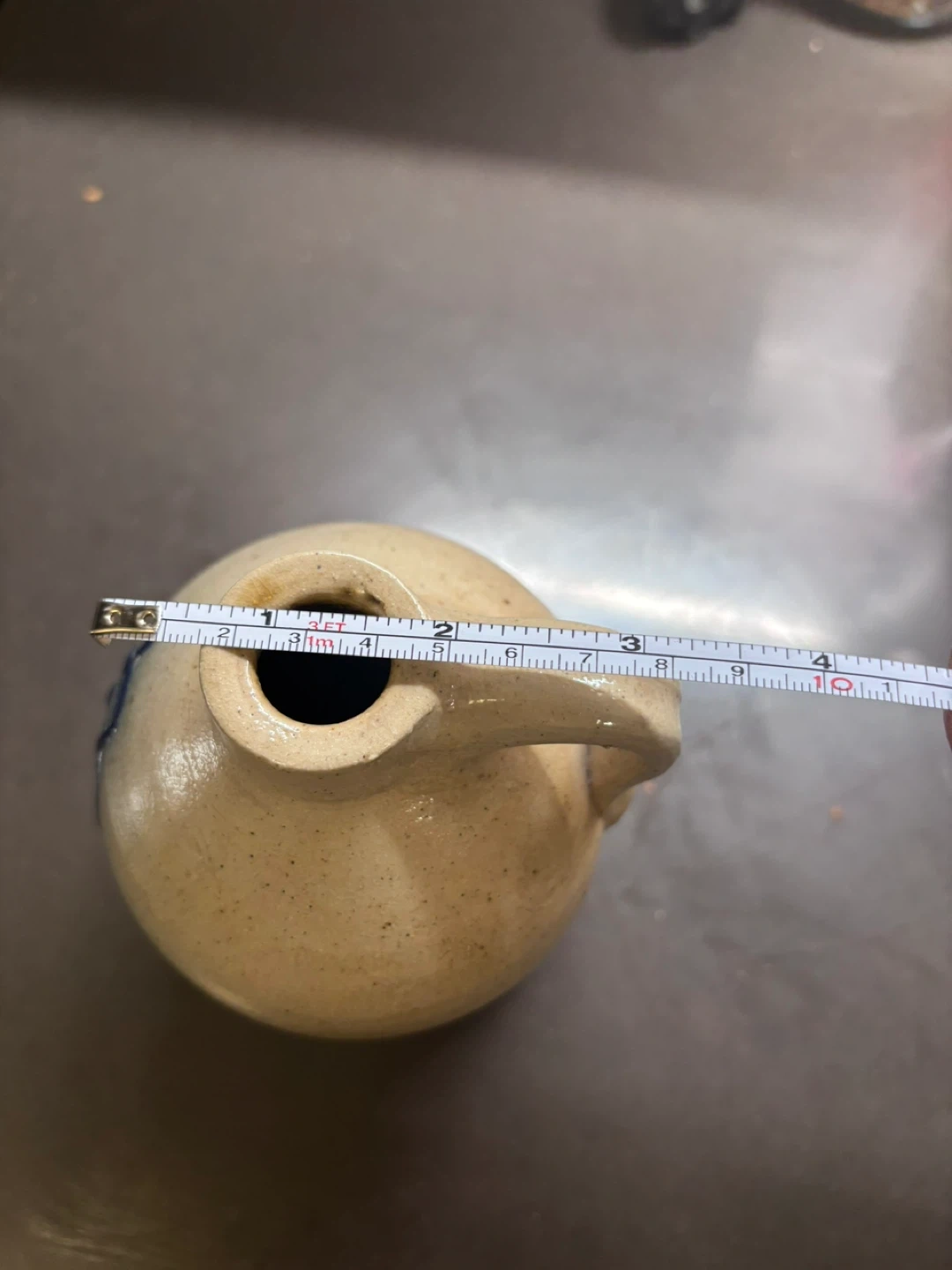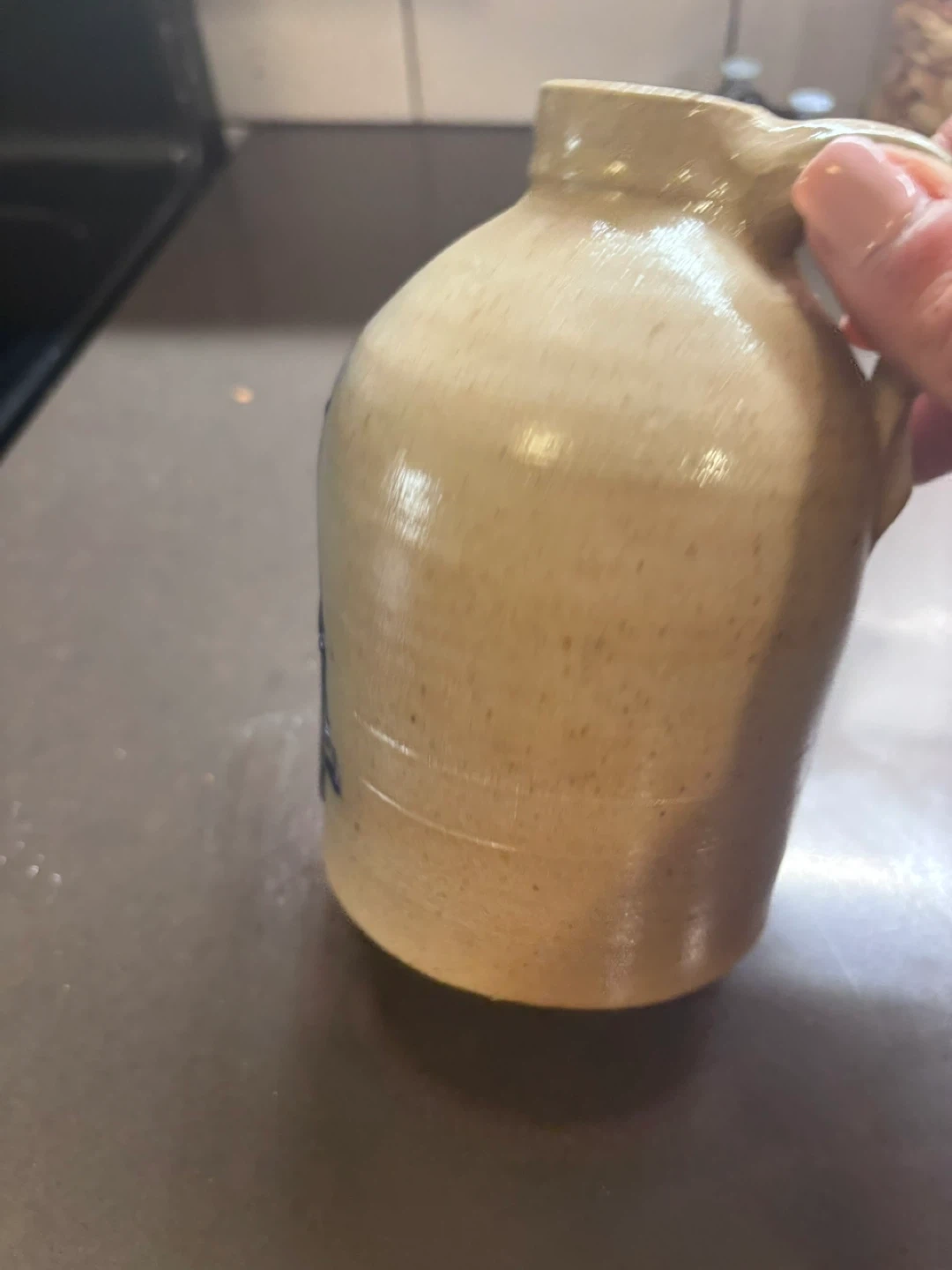 Stoneware Pitcher with Blue Decoration