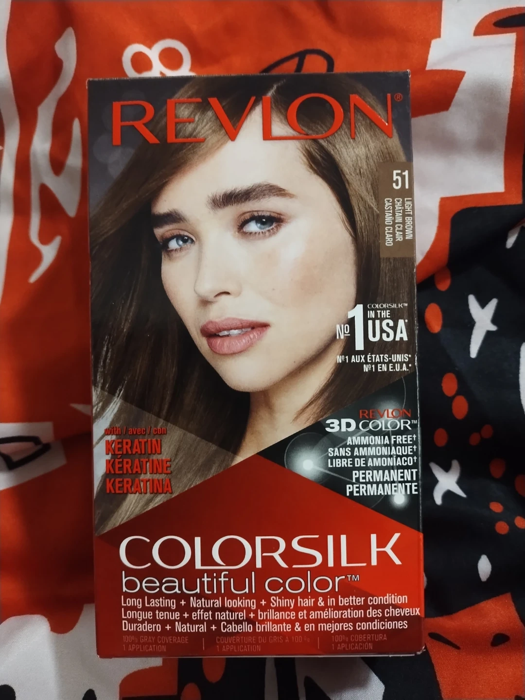 Brand new Revlon ColorSilk beautiful keratin color hair dye treatment in light brown (51). It's a 3D color gel technology for long lasting, natural looking, and shiny hair. Provides 100% gray coverage and is ammonia free.