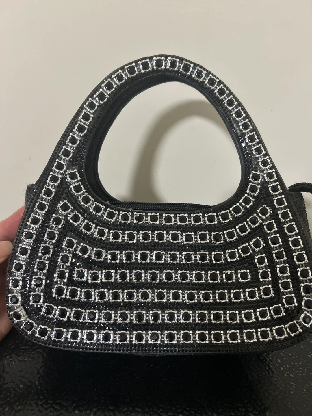 Selling a cute black mini handbag! It features a beaded design and a compact size, perfect for carrying essentials. It's in great condition and ready for a new owner