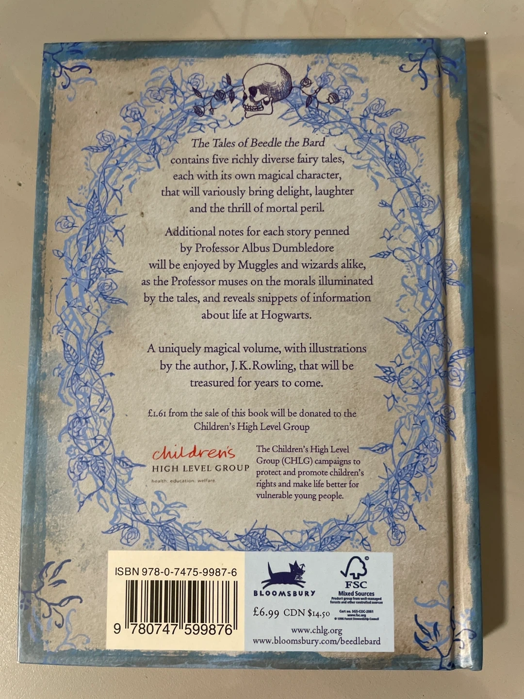 Selling a copy of "The Tales of Beedle the Bard" by J.K. Rowling! It's a children's book with five richly diverse fairy tales, each with its own magical character. Enjoy additional notes for each story penned by Professor Albus Dumbledore!