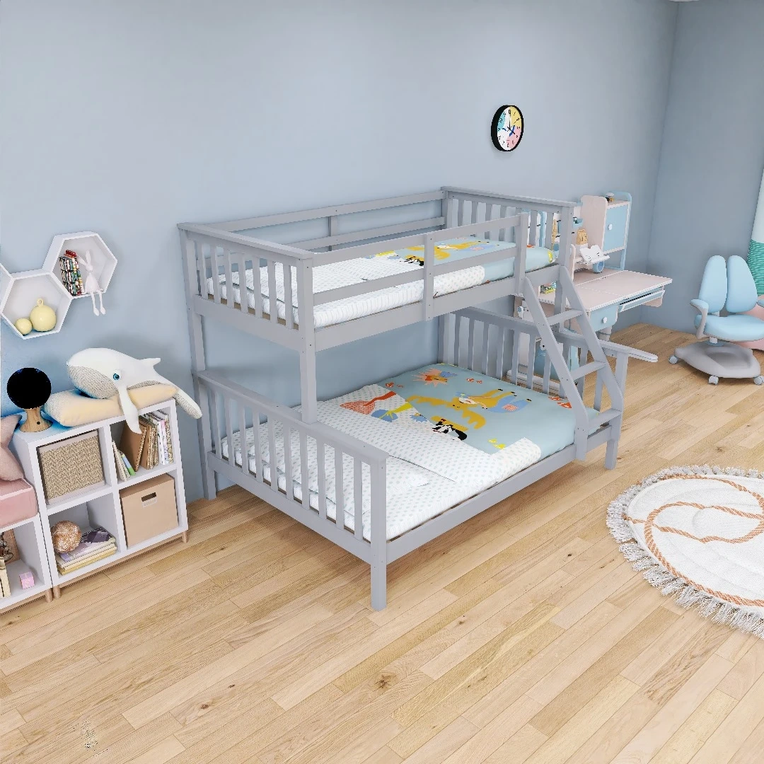 Here's a bunk bed frame in a neutral grey colour! It's perfect for kids' rooms or guest rooms where you need to maximize space. It's in great condition and ready for a new home