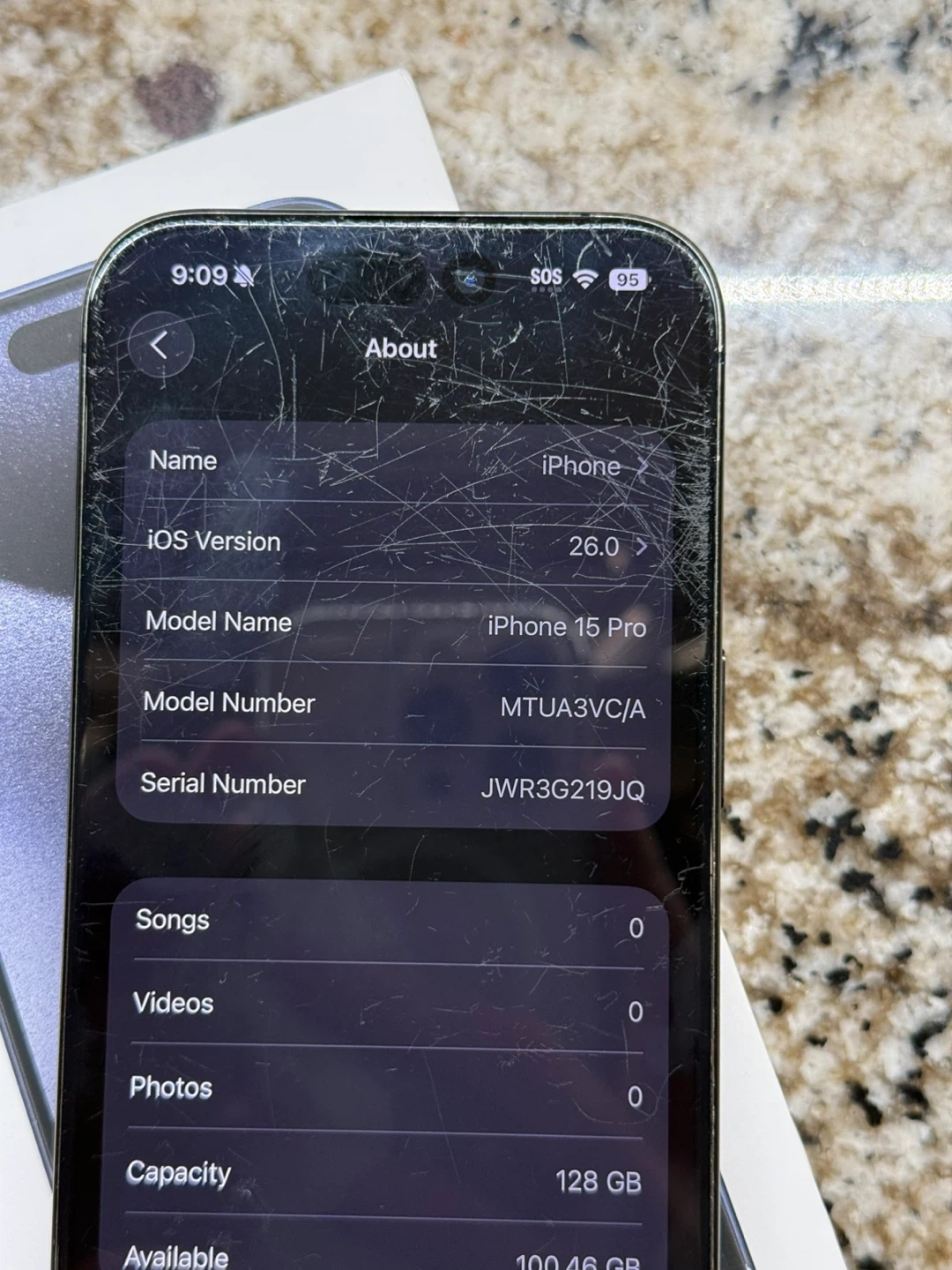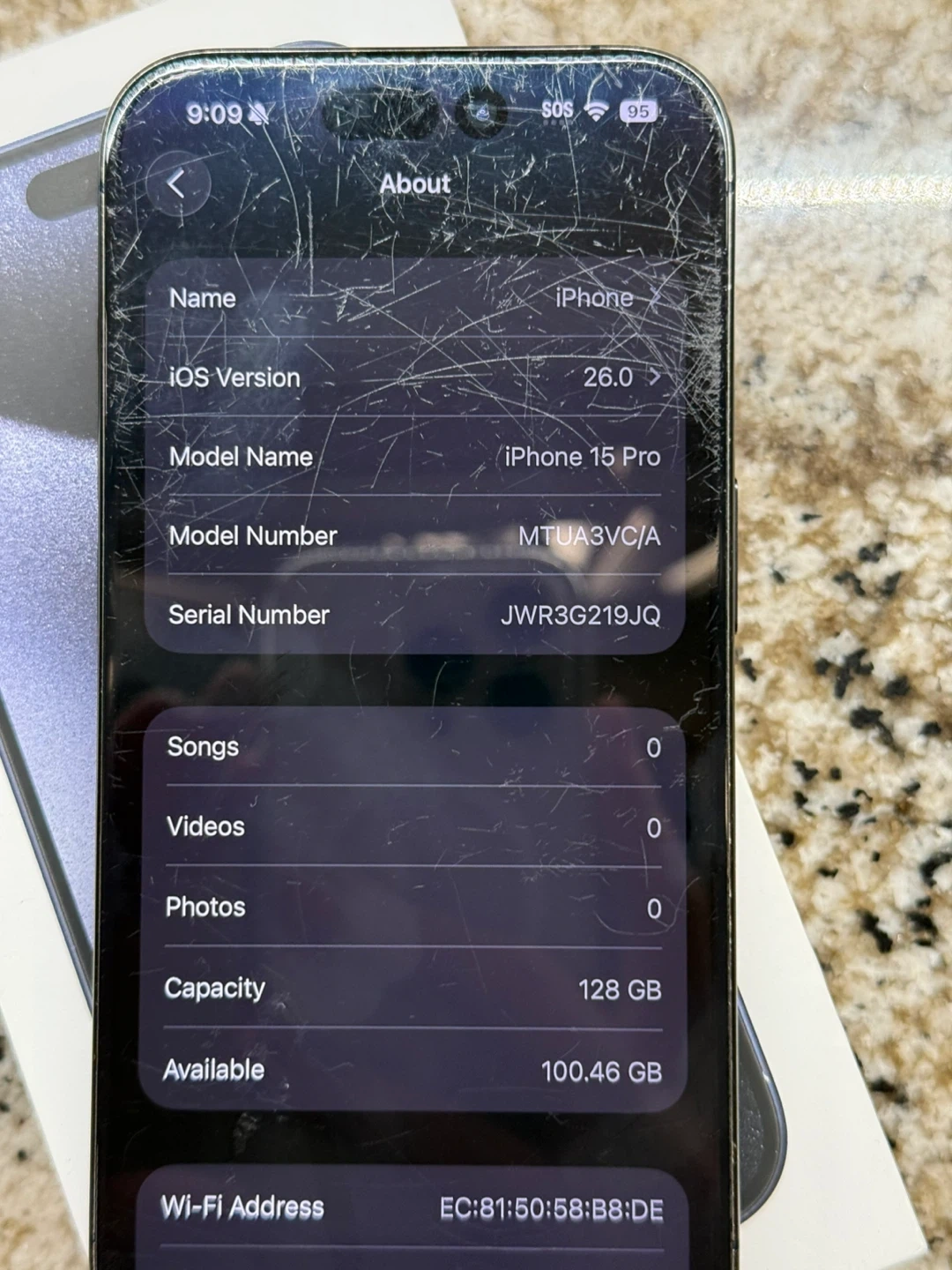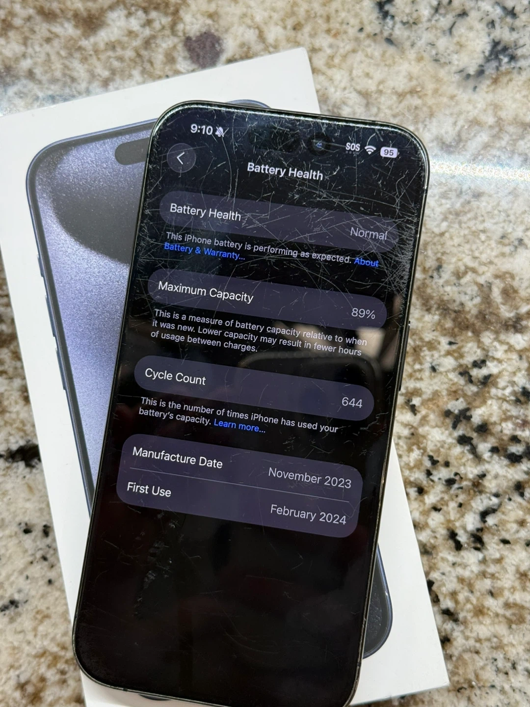 I have this Fair condition iphone 15 pro for sale. It has 128GB storage and 89% BH.