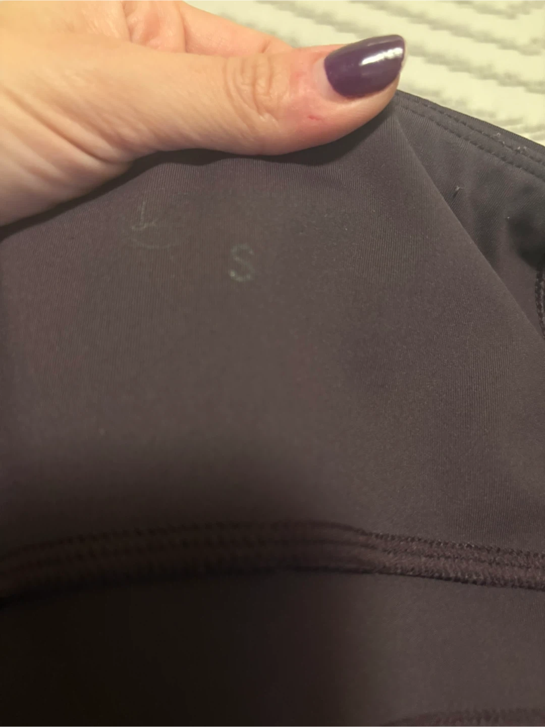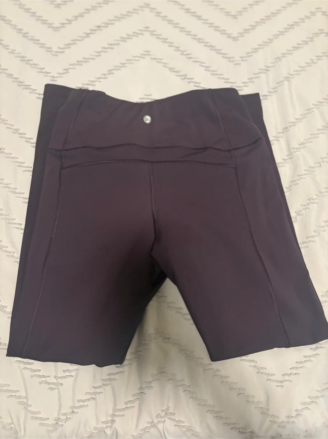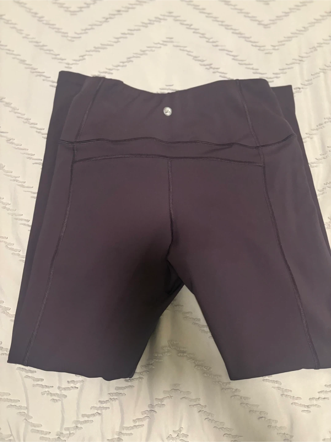 Selling a pair of leggings in size small, very nice feeling/quality. They're in great condition and ready for a new owner. The colour is a lovely dark purple. Perfect for workouts or just lounging around!