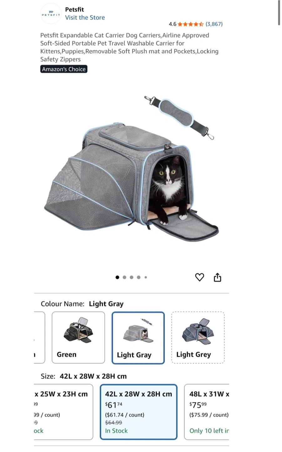 Selling a brand new Petsfit expandable pet carrier in light gray!
