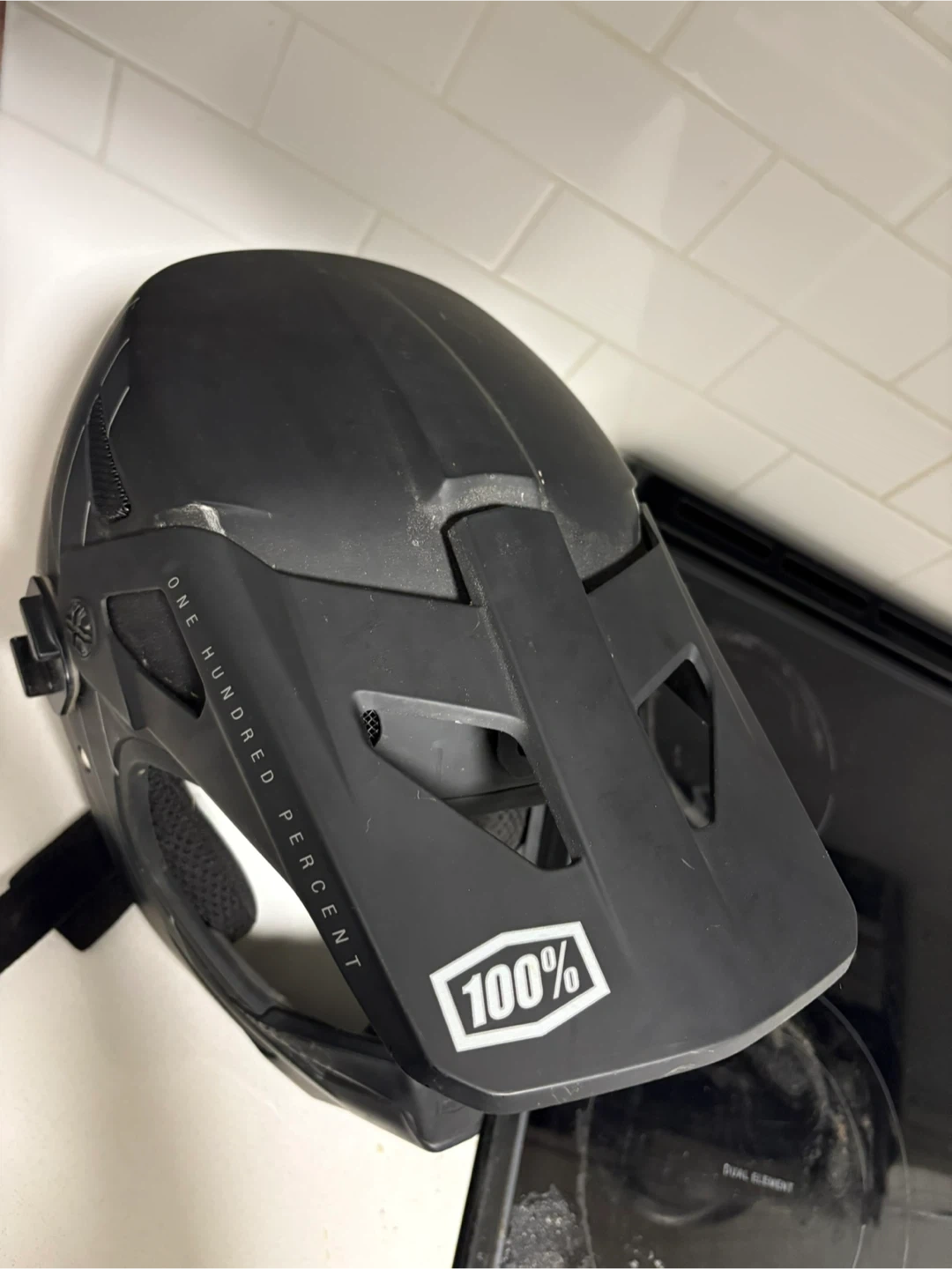 Selling a 100% Trajecta full face helmet in black. It's in good condition and ready for the trails!