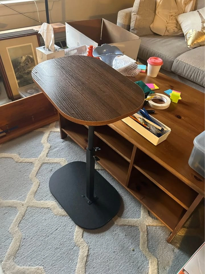 Compact C-shaped end table can be adjusted from 45cm to 80cm. The table top has a 360 degree swivel function. Perfect for using with your sofa or chair and adjustable/hospital bed.