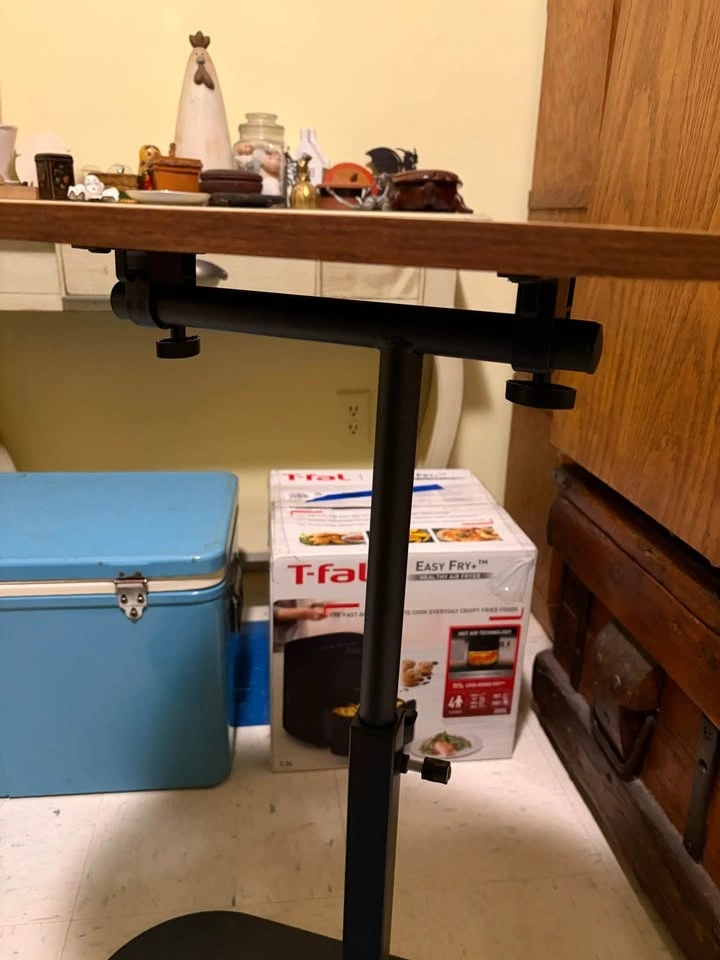 Compact C-shaped end table can be adjusted from 45cm to 80cm. The table top has a 360 degree swivel function. Perfect for using with your sofa or chair and adjustable/hospital bed.