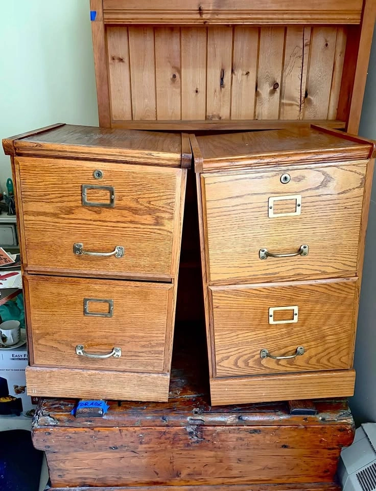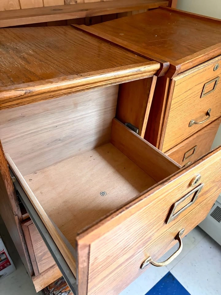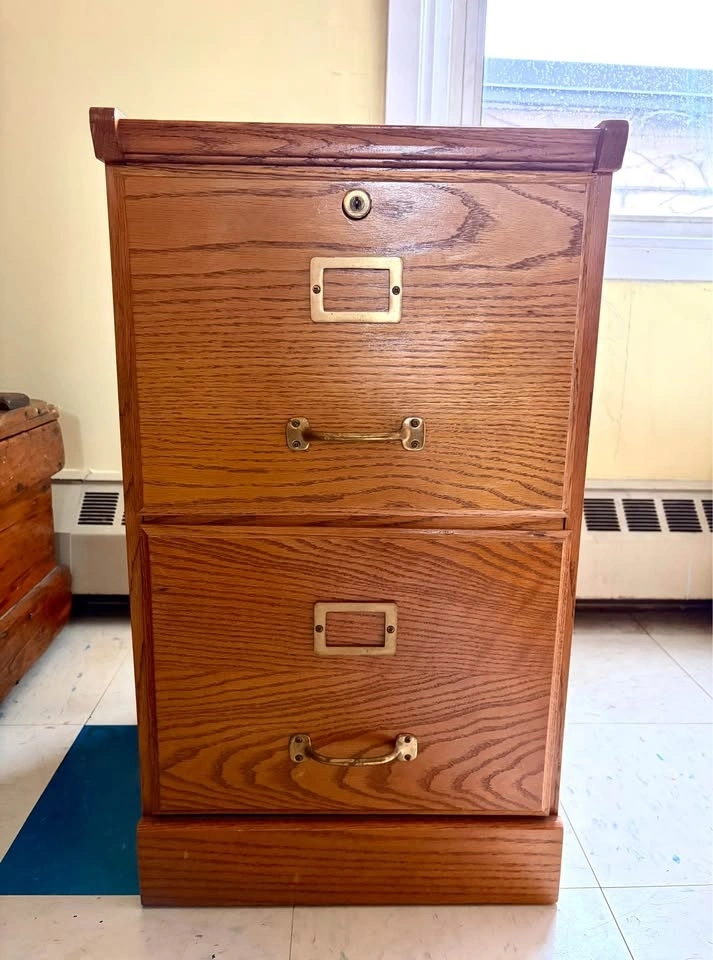 Two vintage filing cabinets with 2 drawers. Do not have a key to the locks. Well worn and could use some love. One is in slightly better condition. Need rehomed ASAP.