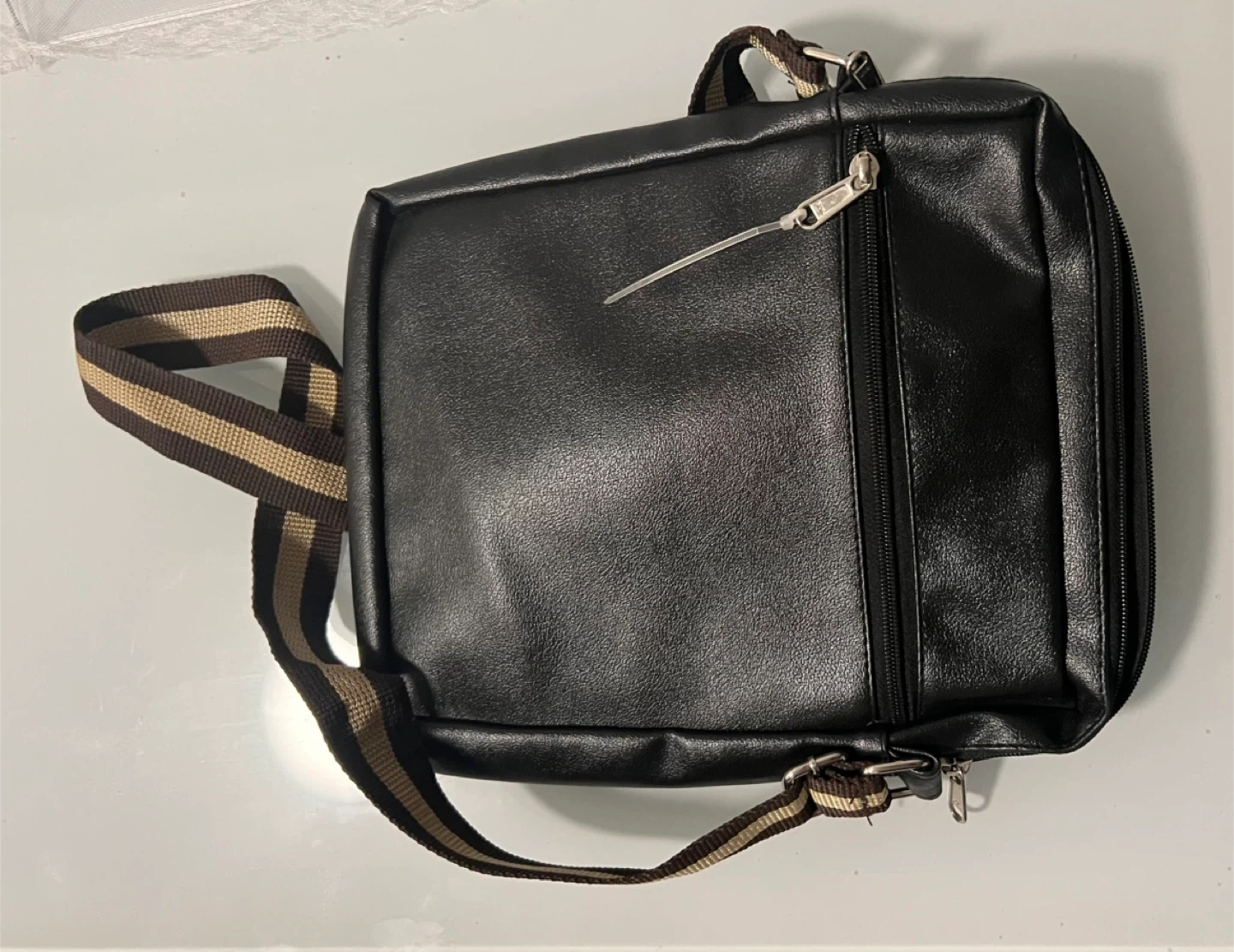Selling a MOSSEBO black leather iPad/shoulder bag. It's brand new and has a striped shoulder strap. Perfect for carrying your essentials!