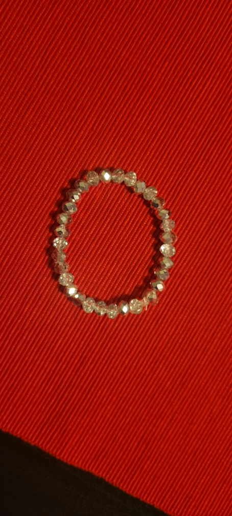 This is a beaded bracelet with clear, crystal-like beads. It is new and ready to be enjoyed by a child.