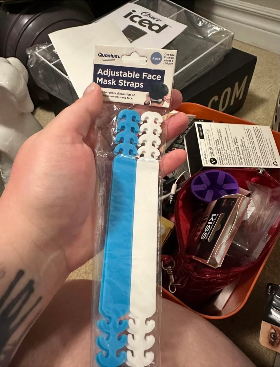 Selling a pack of Quantum adjustable face mask straps, brand new in packaging! These are designed to relieve discomfort from masks on the ears and face. The pack includes 4 pieces and is a one-size-fits-most for both adults and children. Perfect for anyone needing a more comfortable mask-wearing experience!
