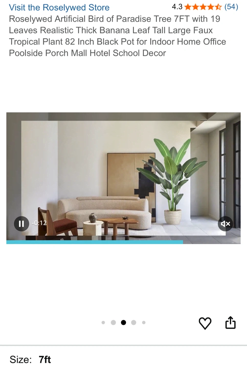Add a touch of the tropics to your home with this Roselywed Artificial Bird of Paradise Tree! It stands at 7ft tall and features realistic, thick banana leaves. It's a great way to add some greenery to your indoor space without the hassle of watering or fertilizing. The leaves are designed to be realistic and the trunks are textured, set in a sturdy black pot.