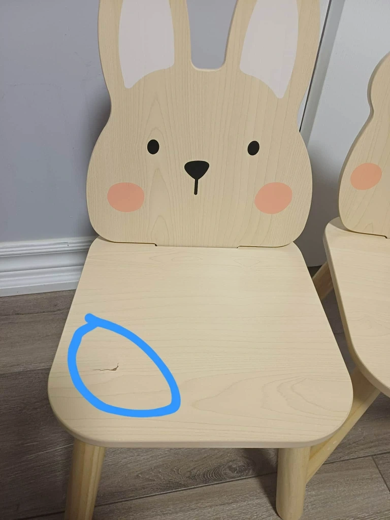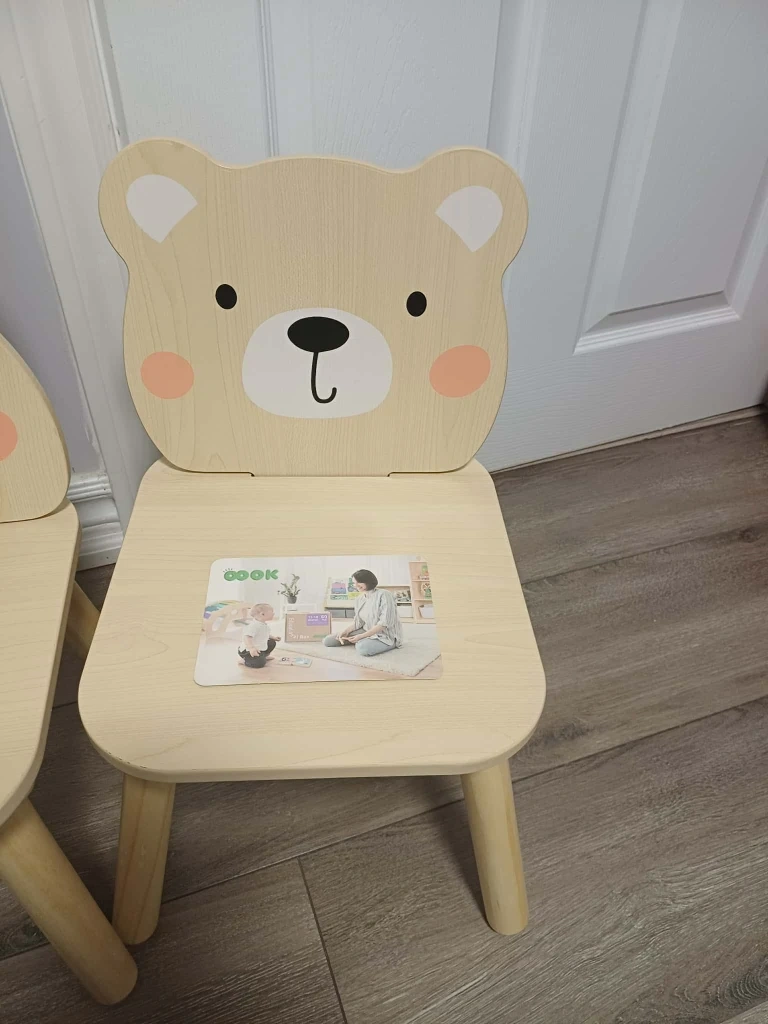Selling a set of adorable Oook kids chairs, one with a bear design and the other with a rabbit design. They're perfect for a playroom or kids' room! There is a small crack on the seat of the rabbit chair.