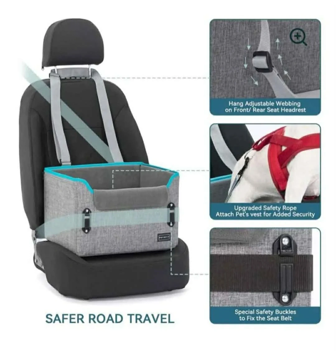 Keep your furry friend safe and comfy on car rides with this PETSFIT dog car seat! It's designed for safer road travel and can be used in both the front and back seats. The adjustable webbing and safety rope ensure your pet stays secure, and it's easy to use and collapsible for storage.