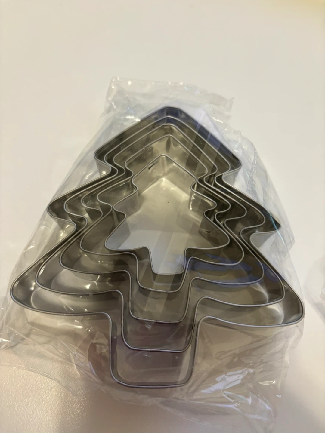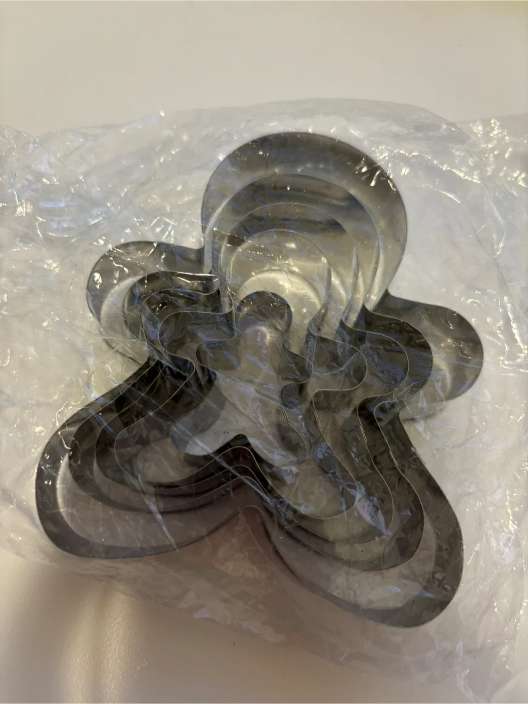 I'm selling a set of cookie cutters in the shape of a gingerbread man and a Christmas tree! They're brand new and still in their original packaging. Perfect for baking some holiday treats!
