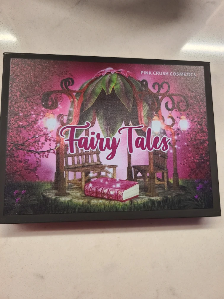 Pink Crush Cosmetics Fairy Tales eyeshadow palette! This palette features 12 beautiful shades with names like Love Story, Dreamy, Faery, Fable, Folklore, Fantasy, Mythical, Bookworm, Magical, Novella, Legend, and Storyteller.