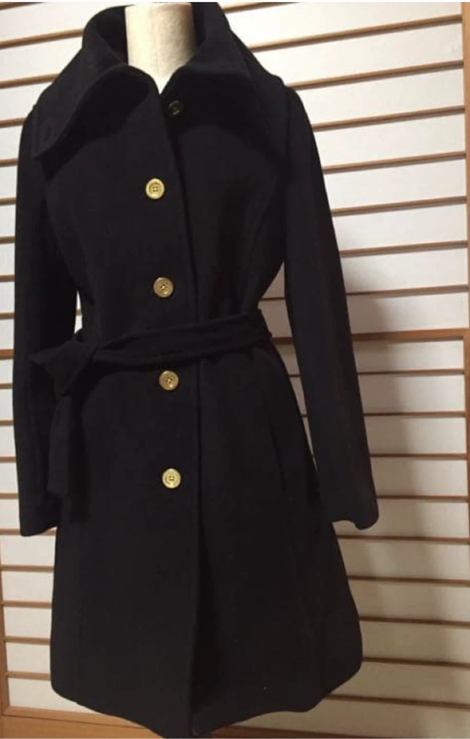 Coach Black Wool Blend Belted Coat