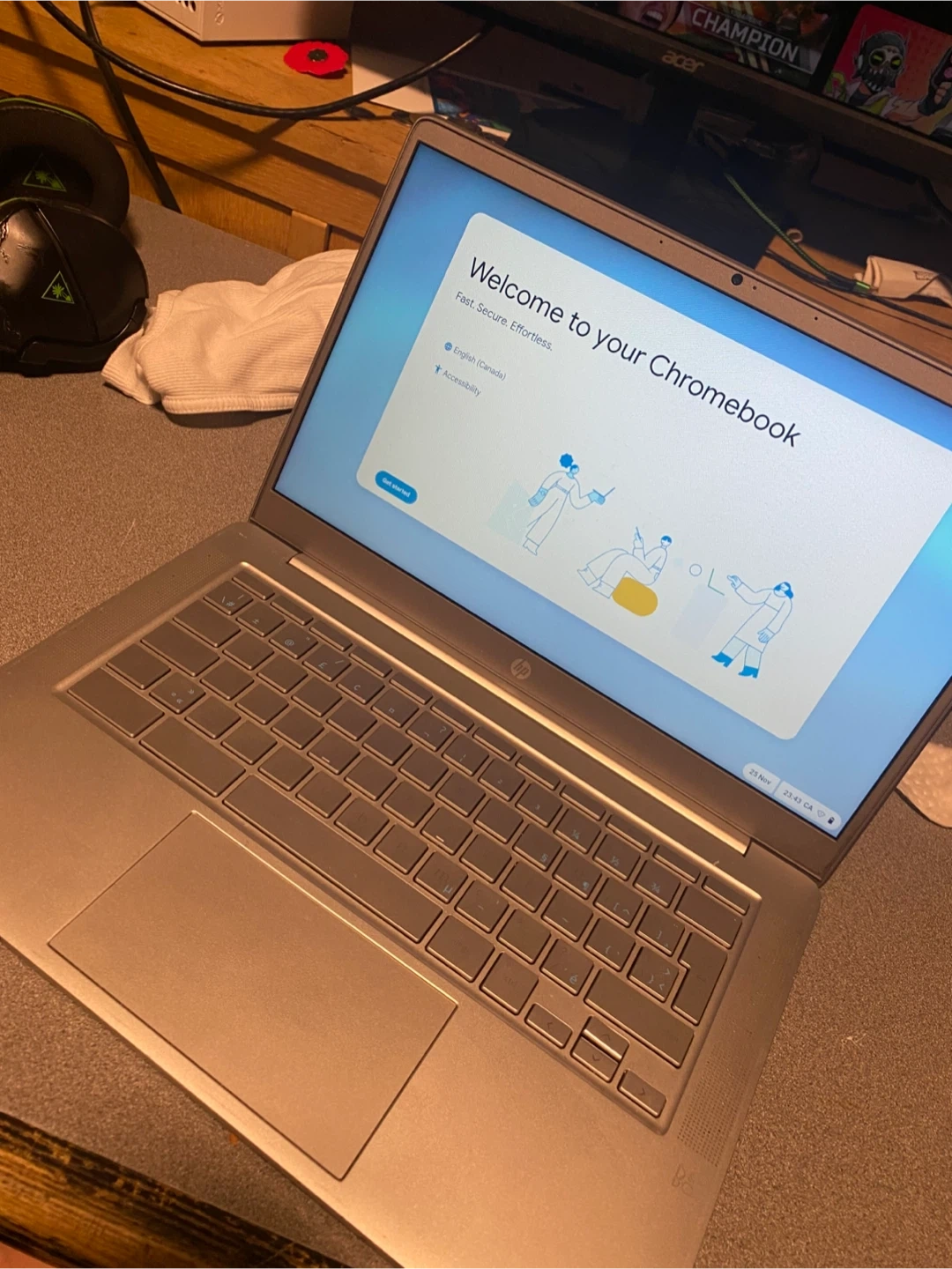 Selling my HP Chromebook! It's in great condition hardware wise and with some minor wear and tear on the outside. Perfect for school, work, or just browsing. Lightweight and easy to carry around for day to day school or work use.